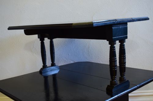 Dieser hohe Teetisch ist in all seinen Gelenken fest, ohne Brüche, ohne Spalten und ohne Holzwurm.