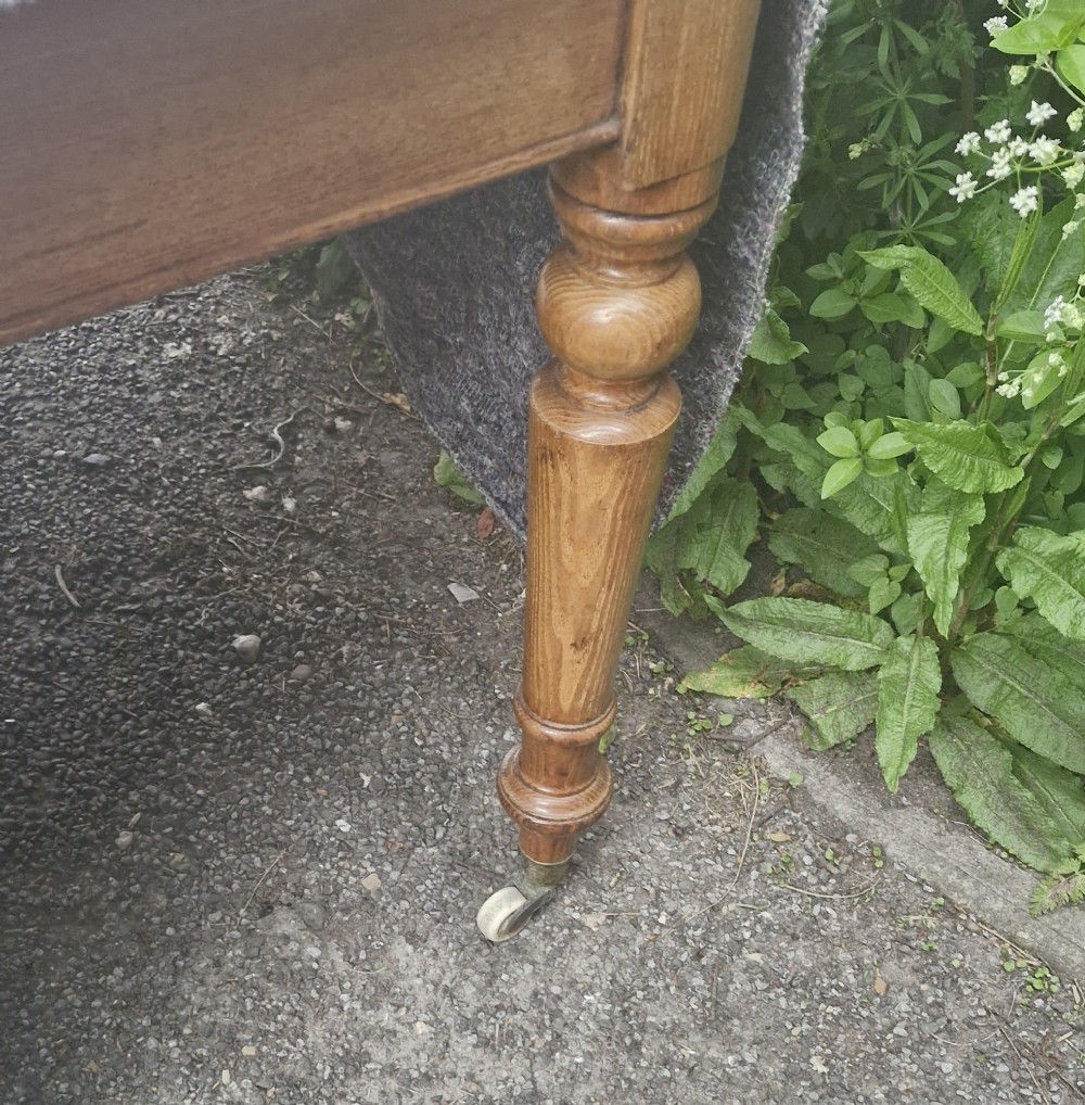 Dieser edle englische Schreibtisch vereint Funktionalität und Design. Gefertigt aus massiver Eiche, steht er auf fein gedrechselten Beinen mit originalen Porzellanrollen. Die großzügige Schreibfläche mit hochwertiger Lederauflage verleiht dem Tisch eine elegante Ausstrahlung – ideal als alter Schreibtisch für das Büro, Wohnzimmer oder Home Office.
