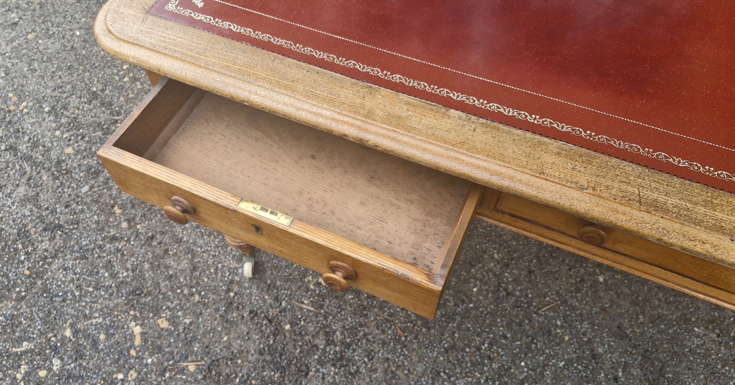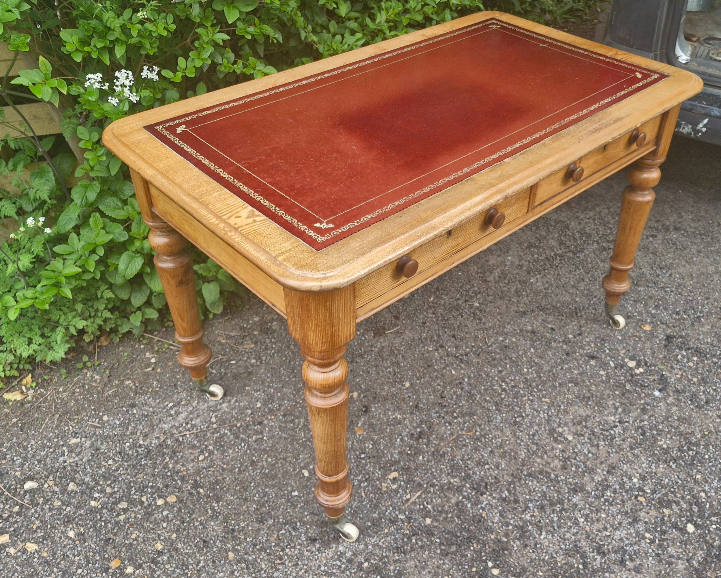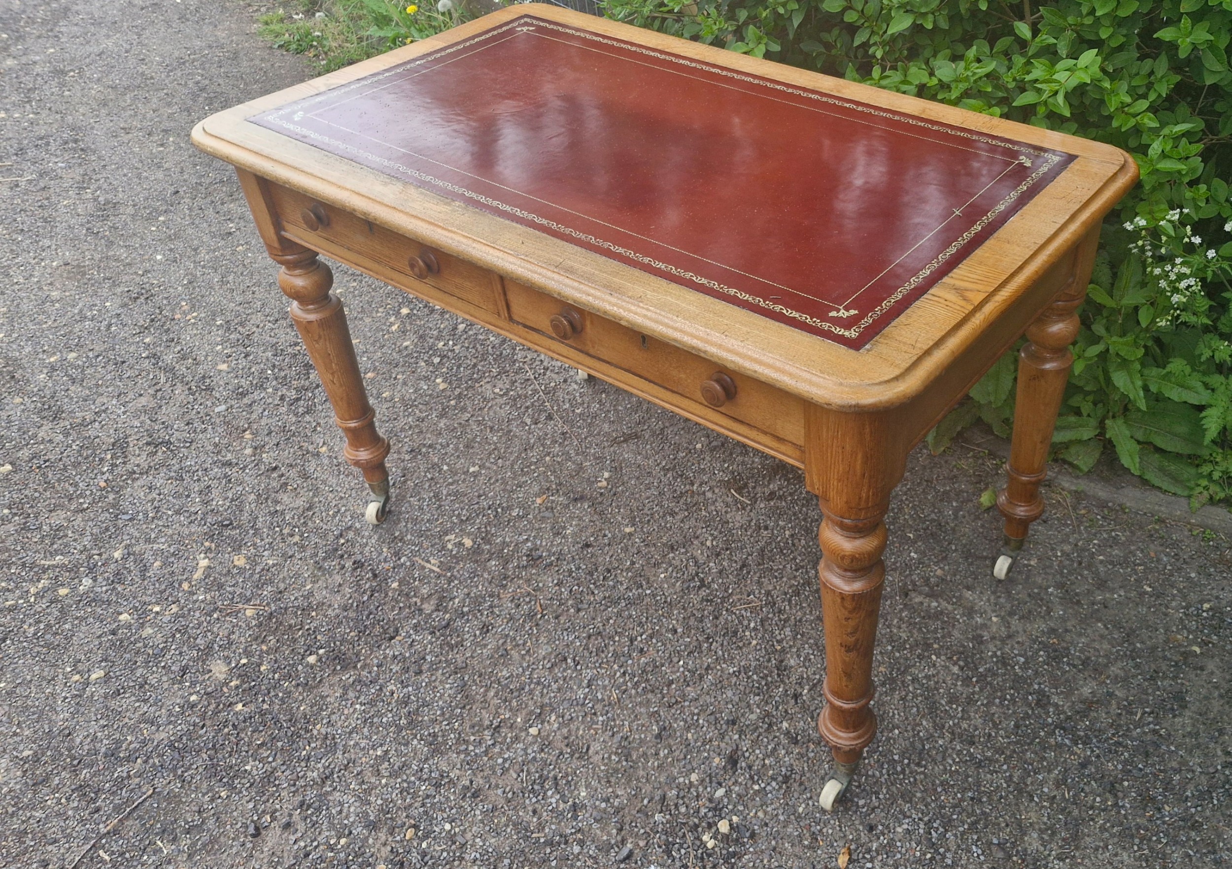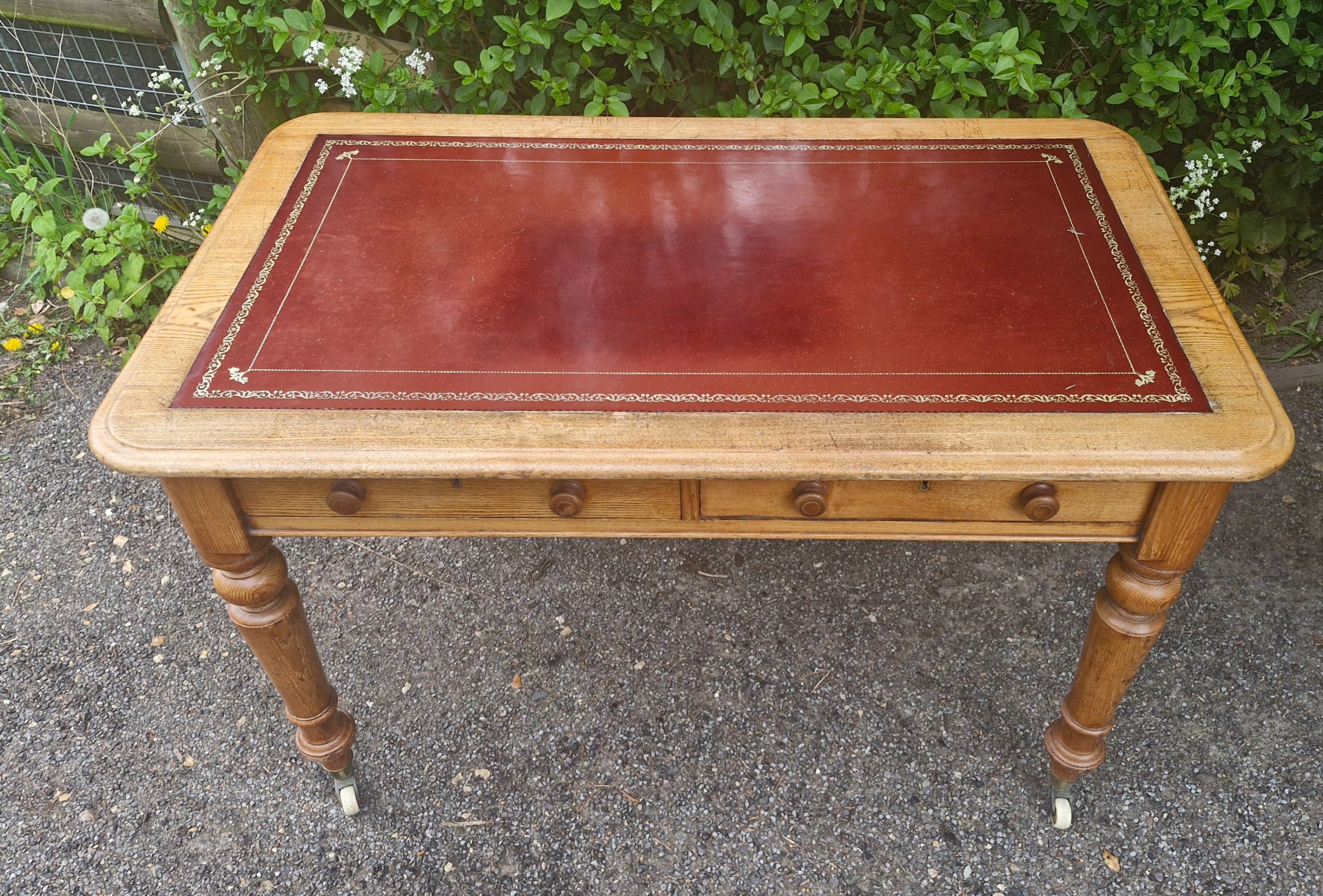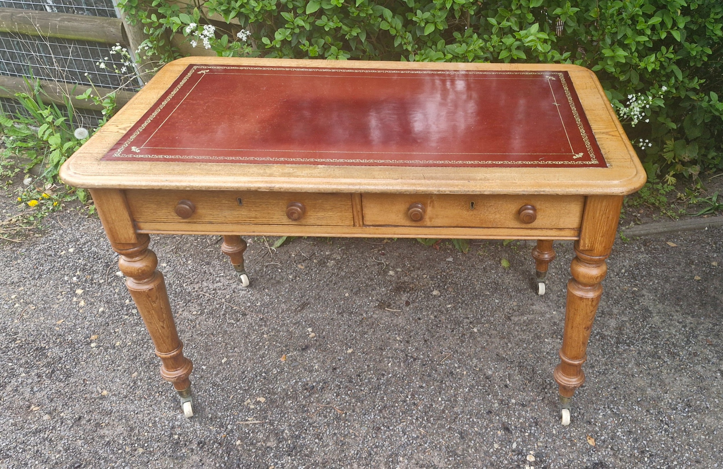 Antiker Schreibtisch aus Eiche mit Lederauflage – Viktorianisch
