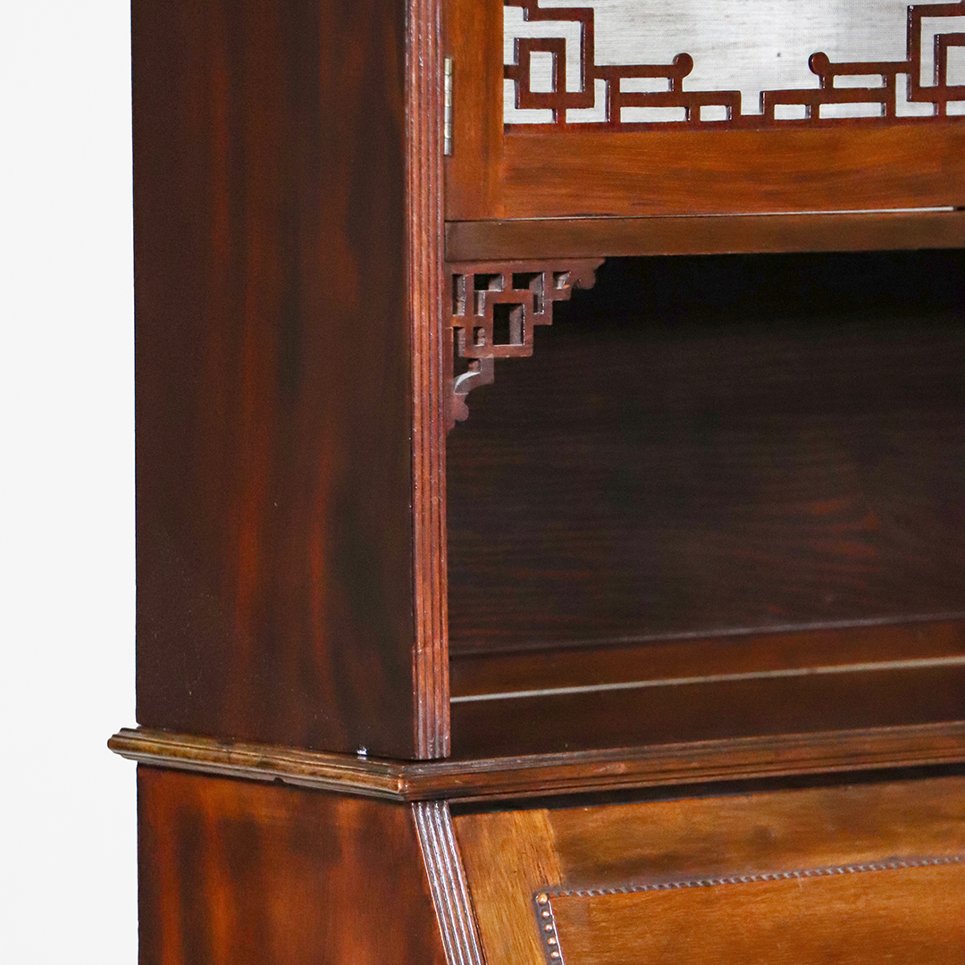 Antiker Chinese Chippendale Revival Aufsatz-Sekretär aus England (ca. 1890–1910)