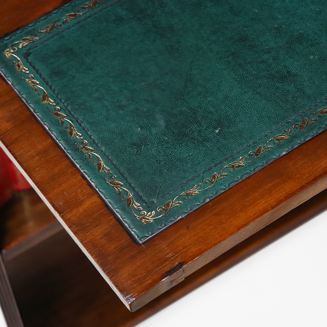 Ausklappbare Schreibfläche mit grünem Leder & vielen Fächern