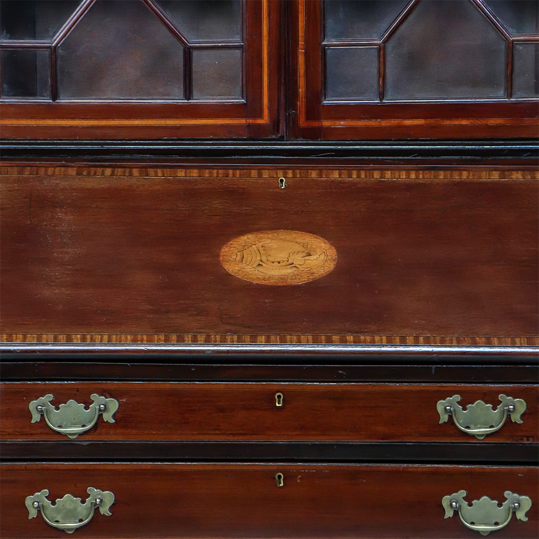 Antiker Mahagoni Sekretär mit Vitrine und Schrägklappe