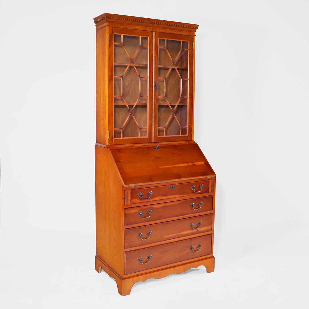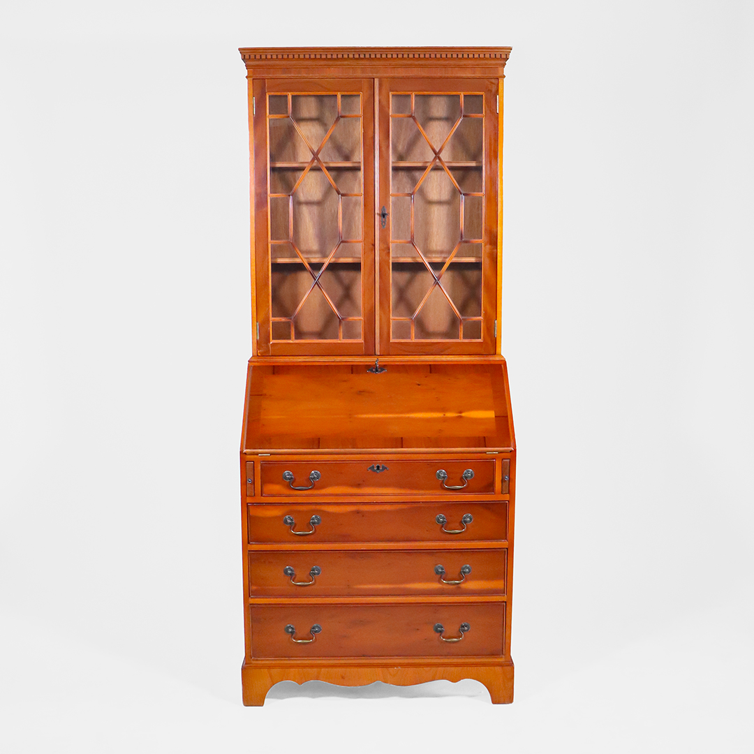 Englischer Georgian Style Sekretär in Eibe mit Aufsatz – Mid 20th Century