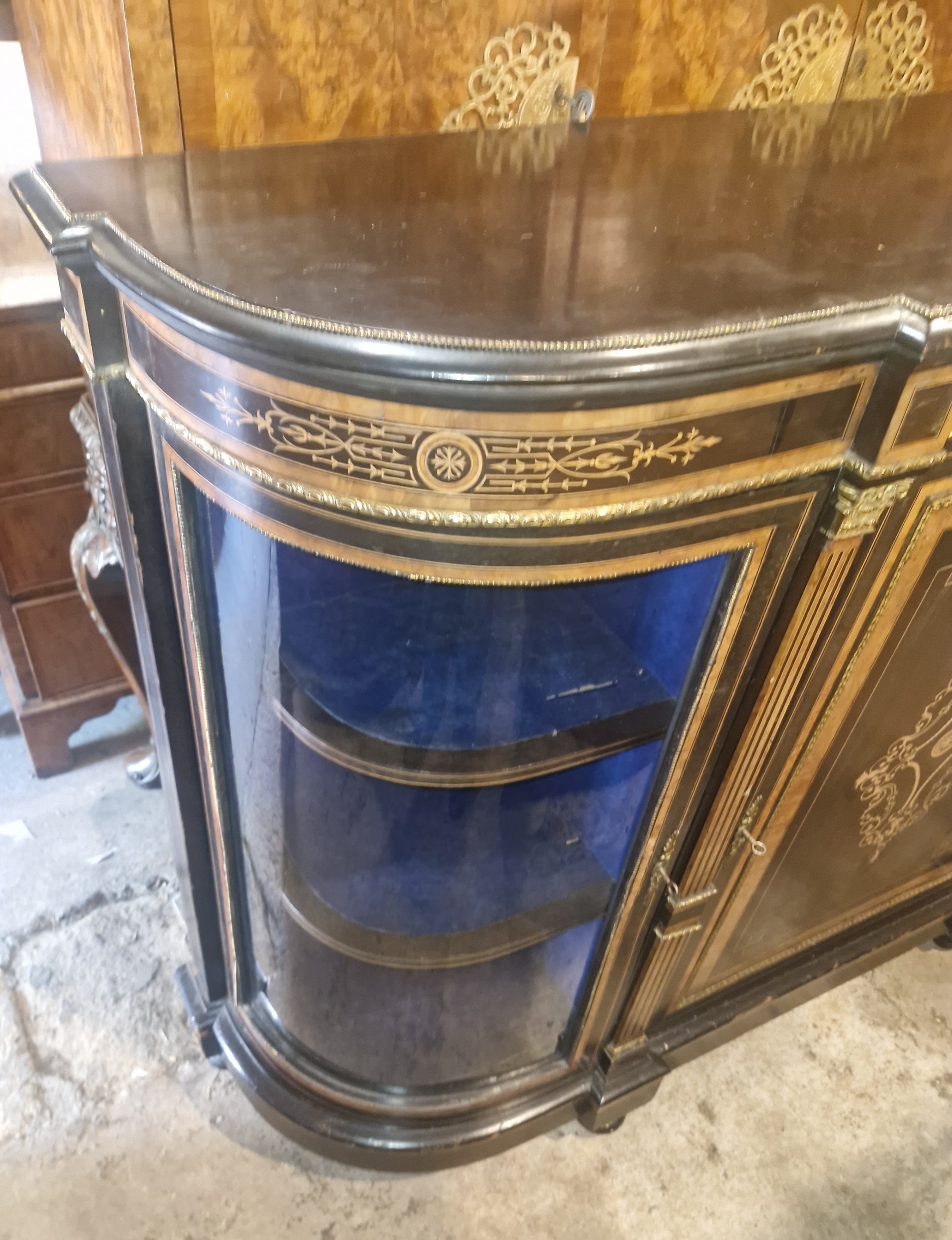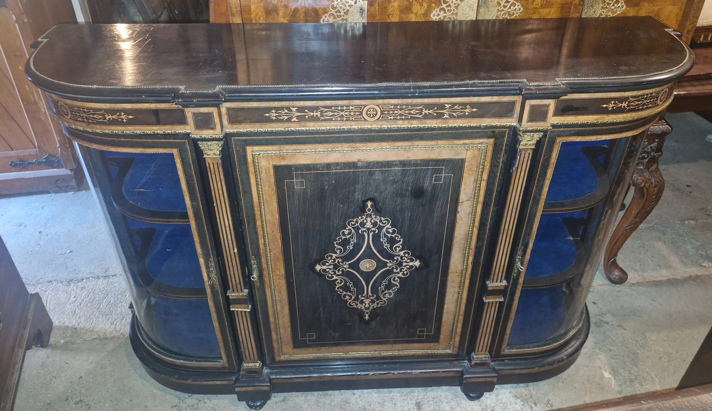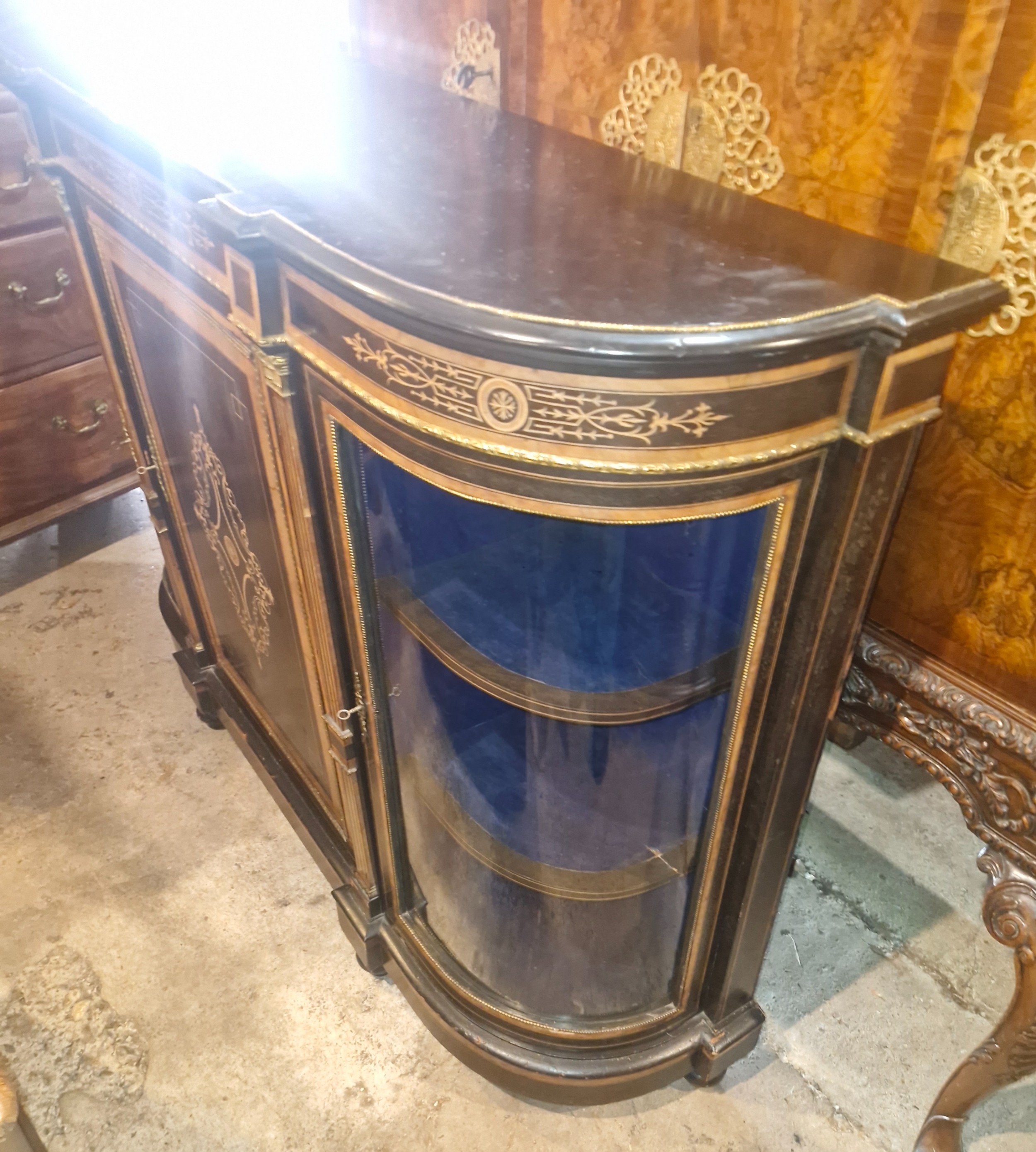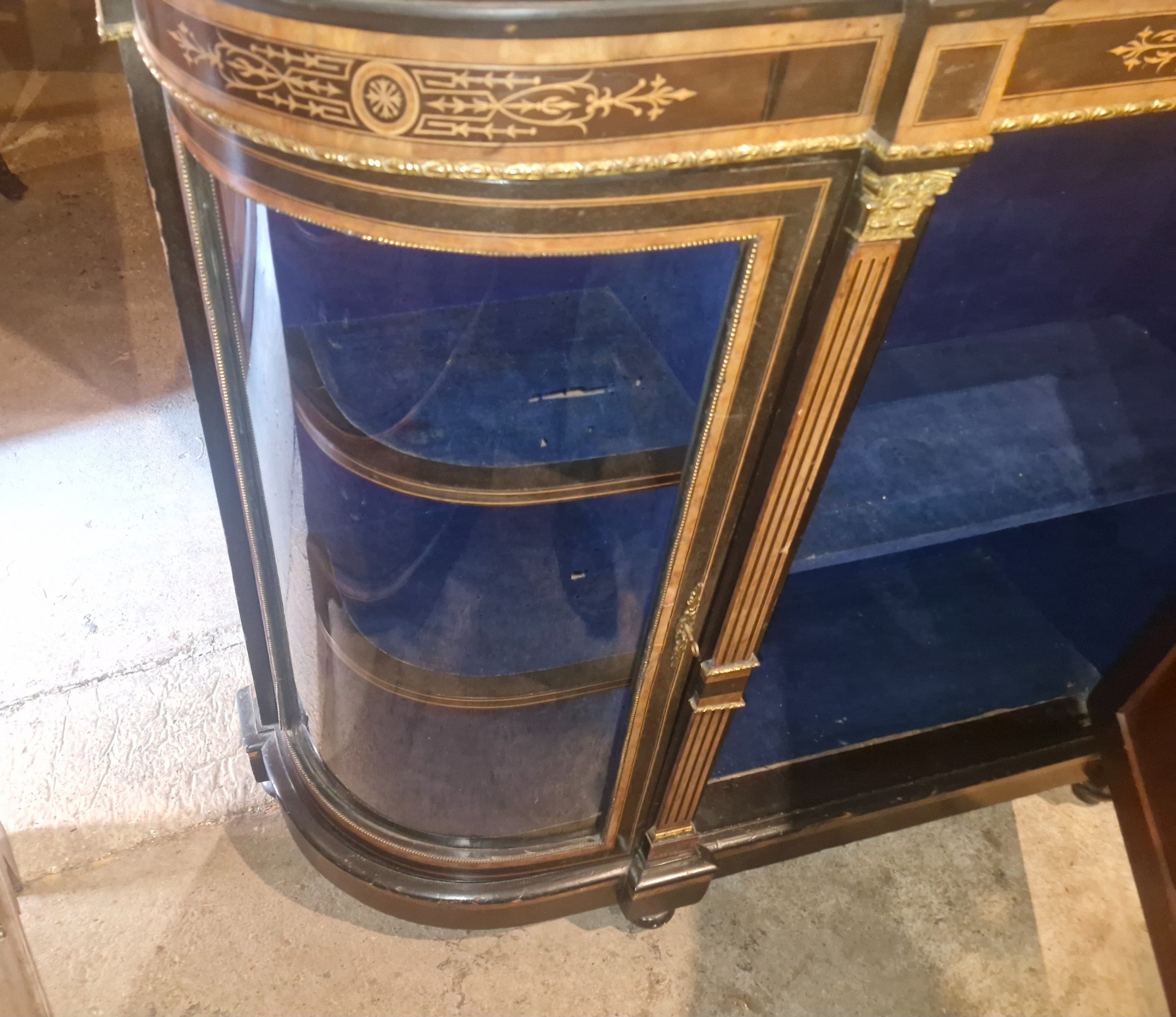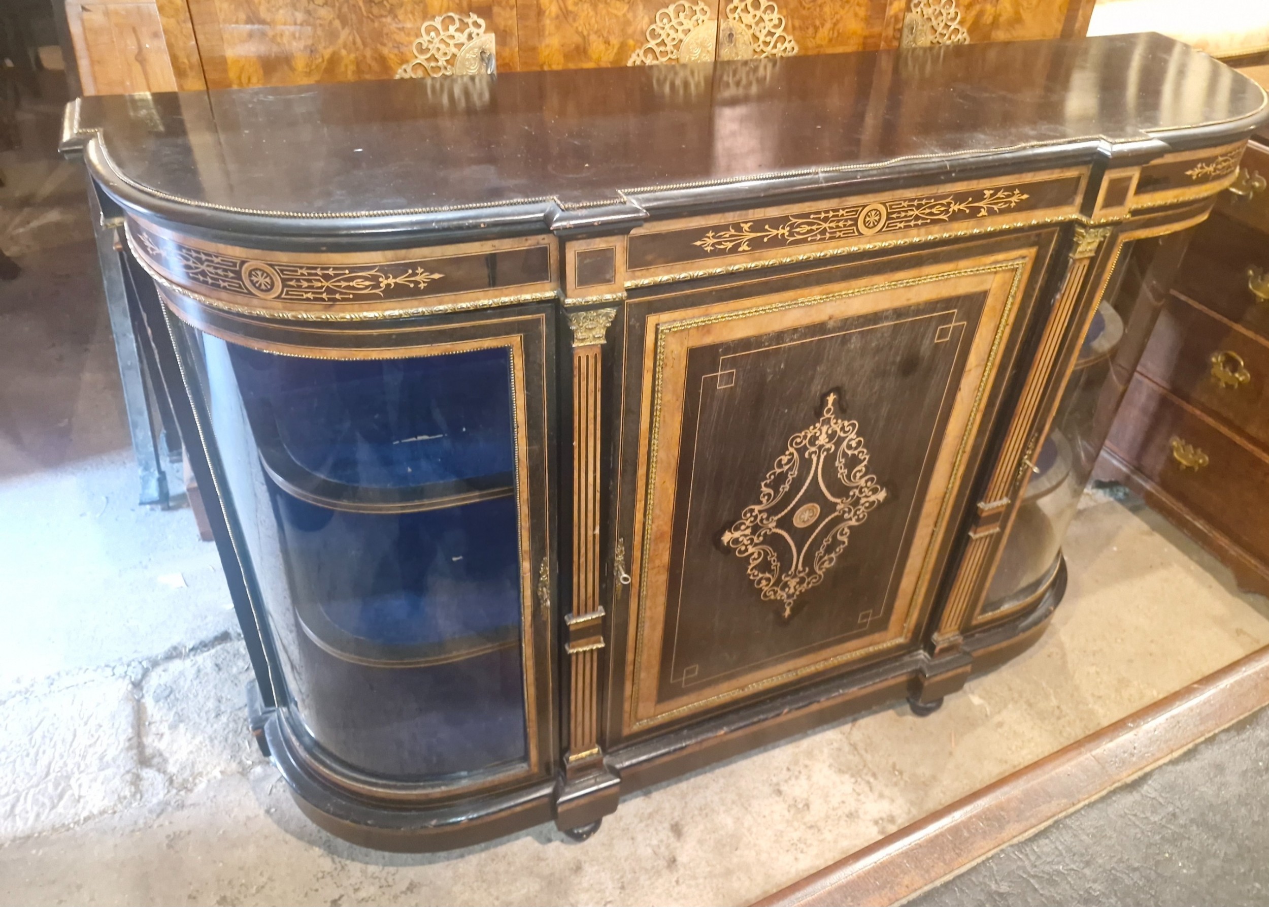 Viktorianische Credenza mit Glastüren und Golddekor - – Englisches Sideboard mit Boulle-Intarsien - Antike Credenza mit Messingverzierungen