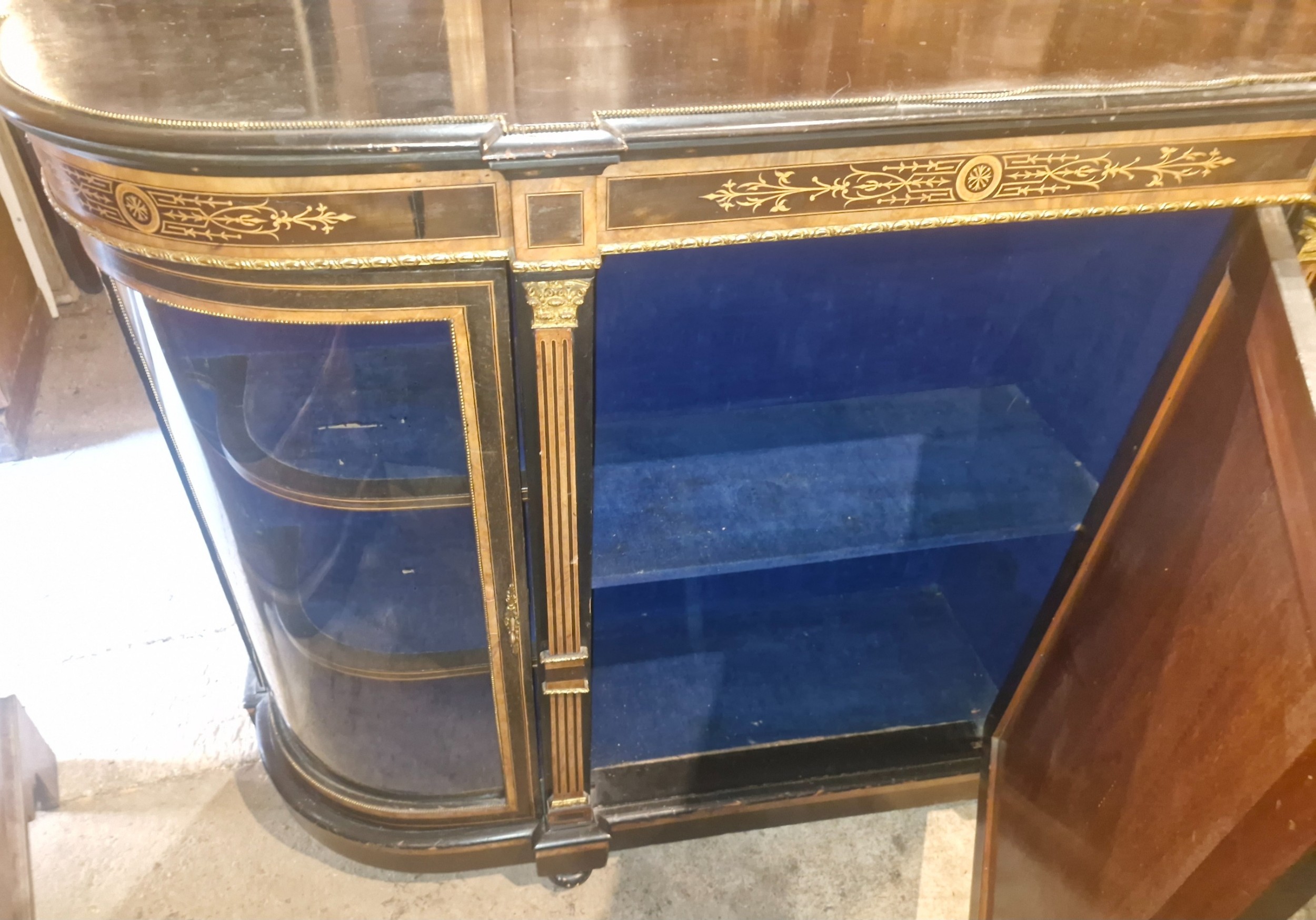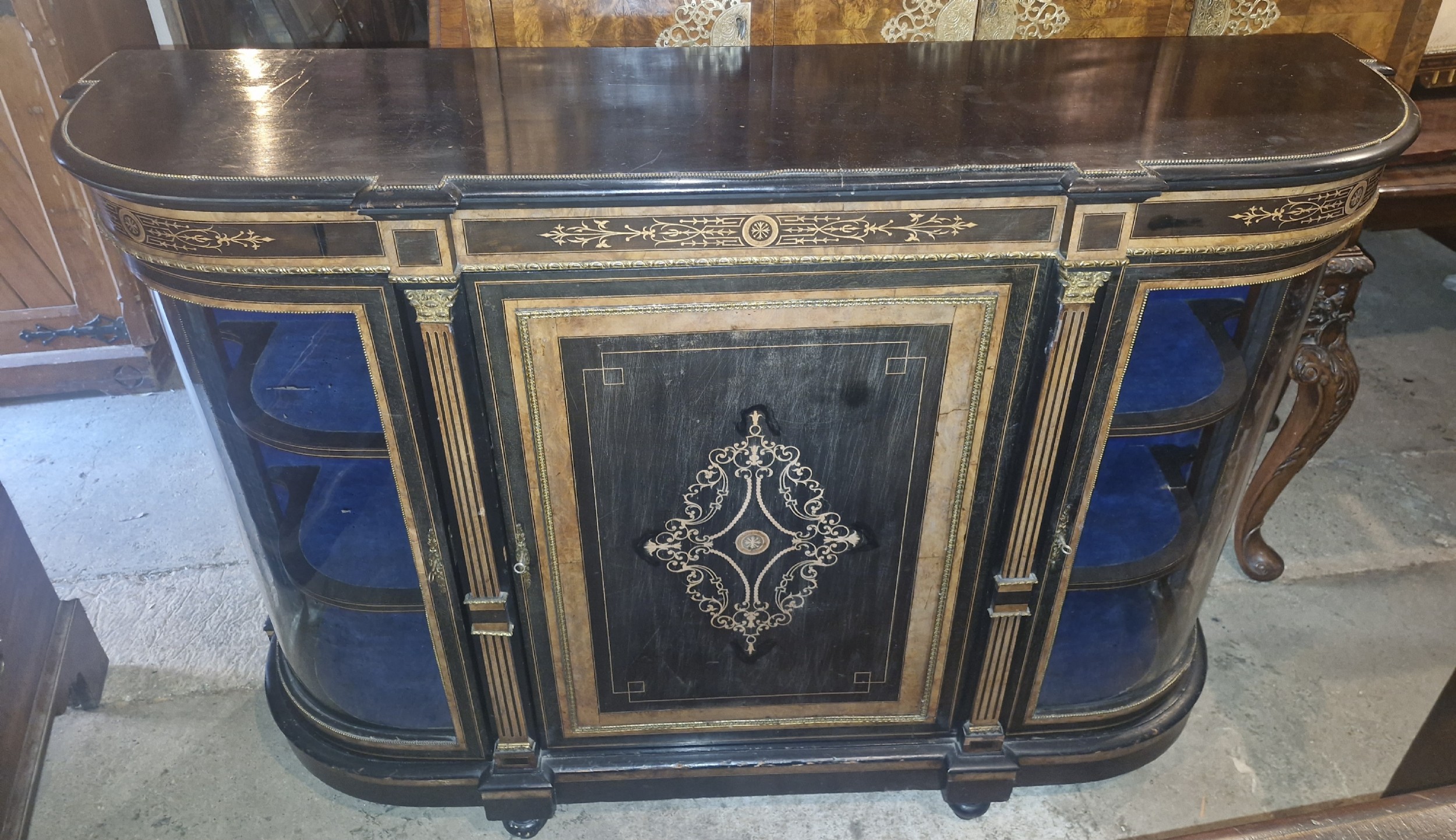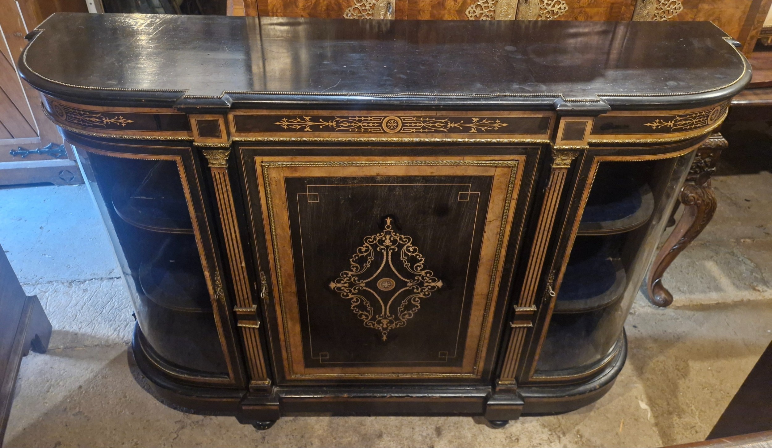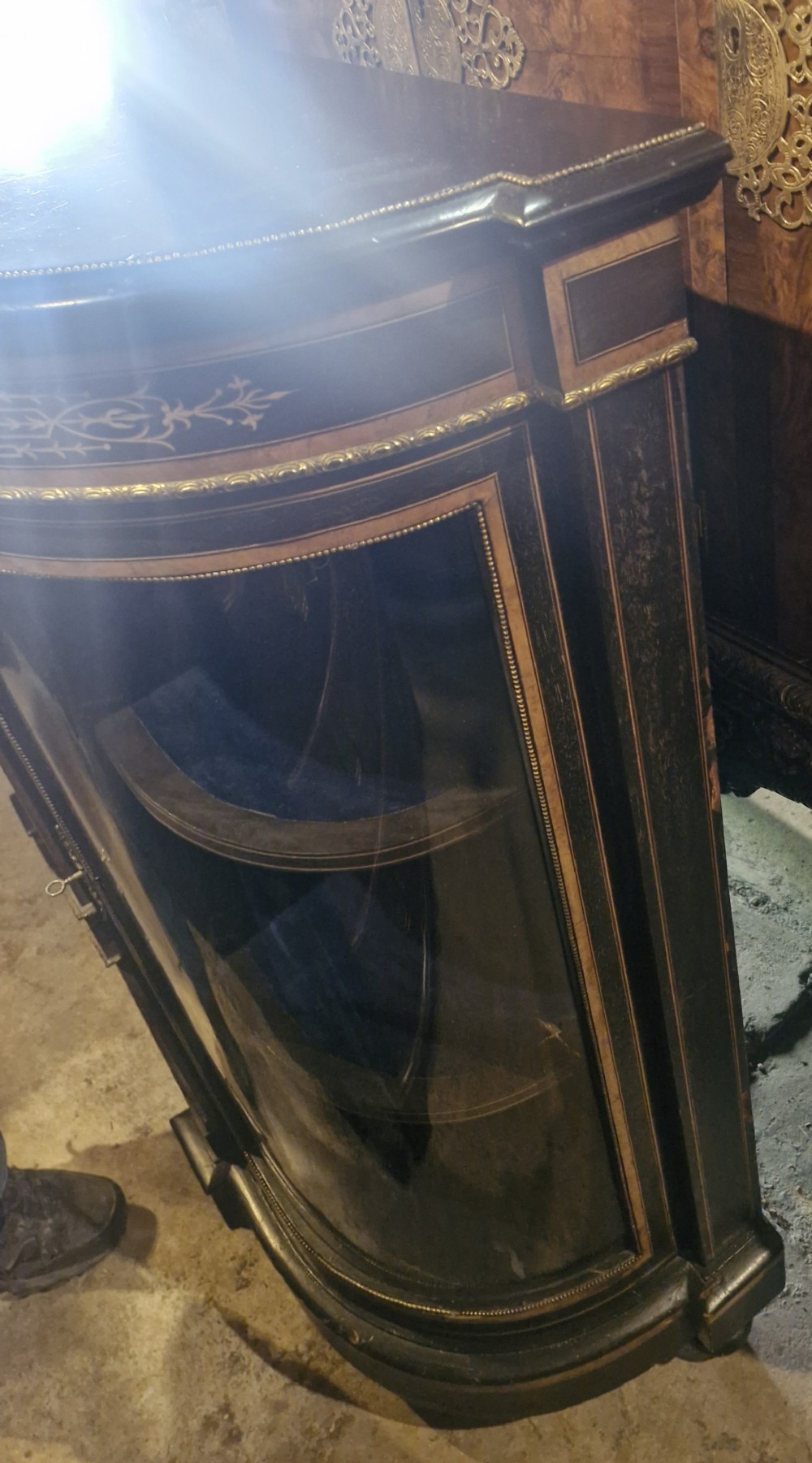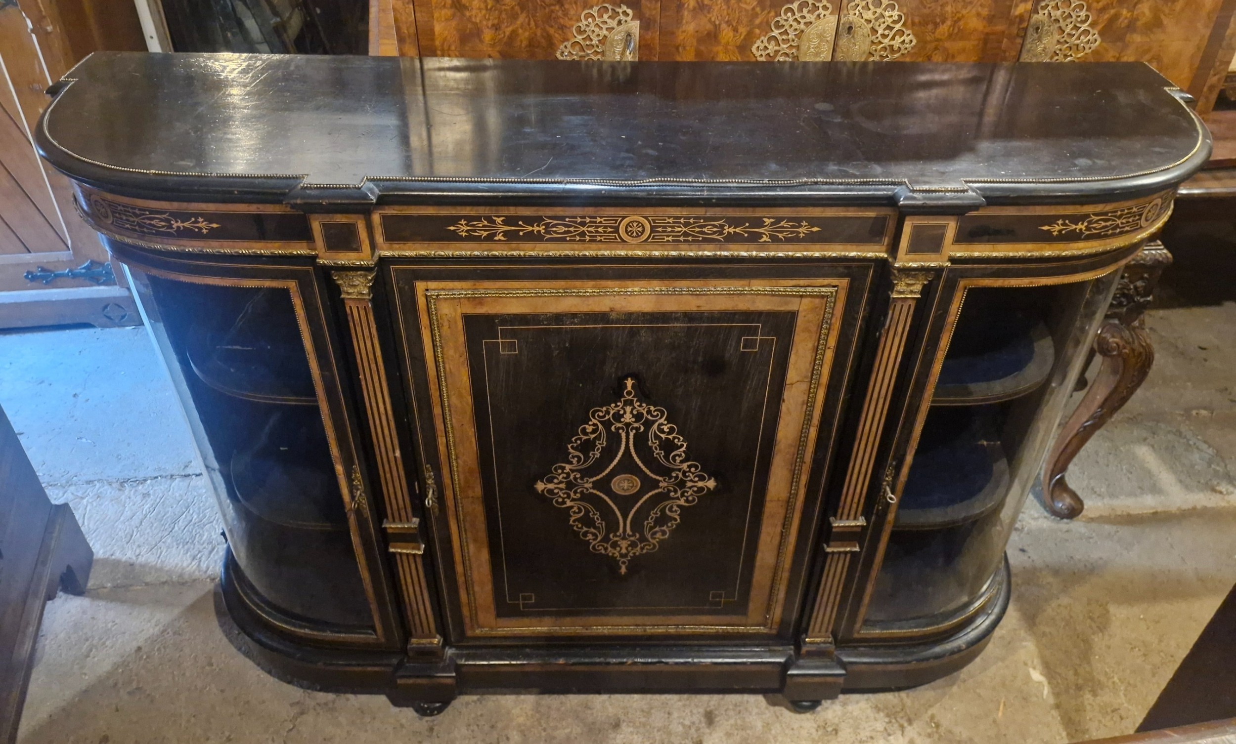 Viktorianische Credenza mit Glastüren und Golddekor - – Englisches Sideboard mit Boulle-Intarsien - Antike Credenza mit Messingverzierungen