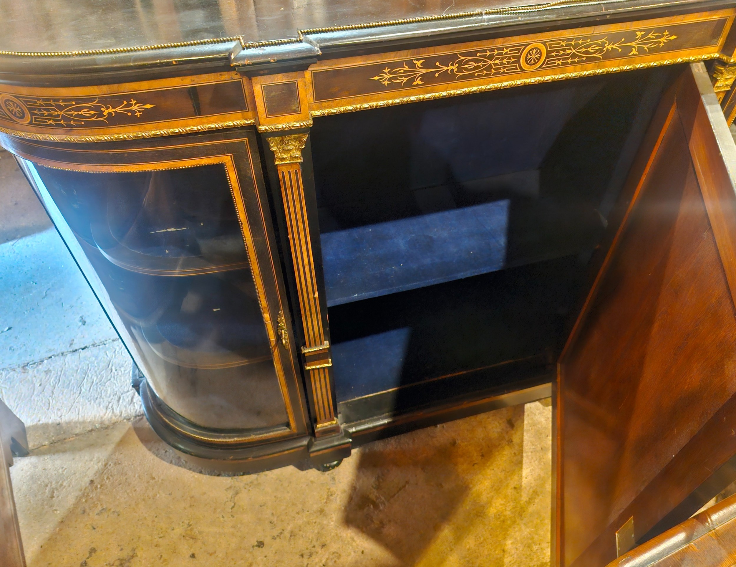 - Original Victorian Credenza mit Intarsien und geschwungenen Glasenden