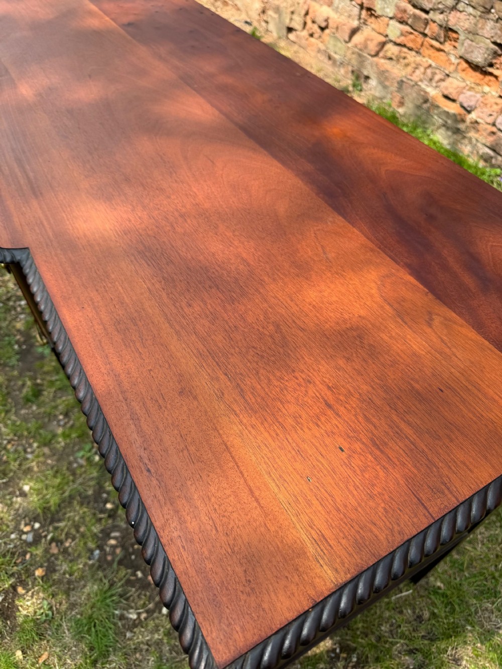 - Oberfläche: Mahagoni-Top mit gealtertem, kontrastreichem Unterteil