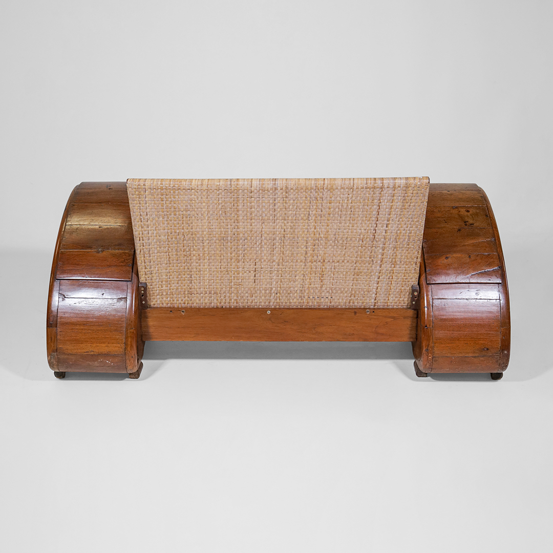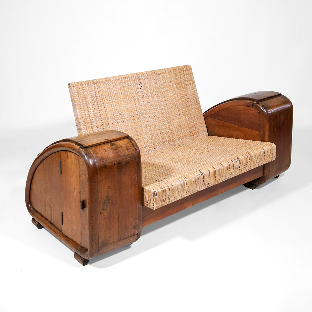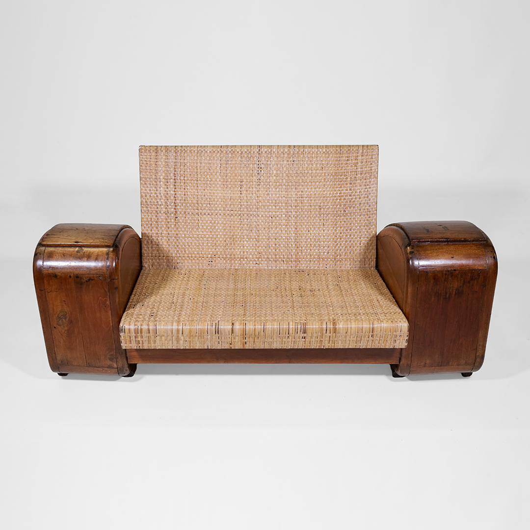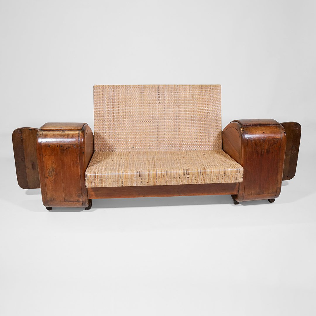 Art Deco Lounge Sofa – Antik Rattan Sofa aus massivem Teakholz