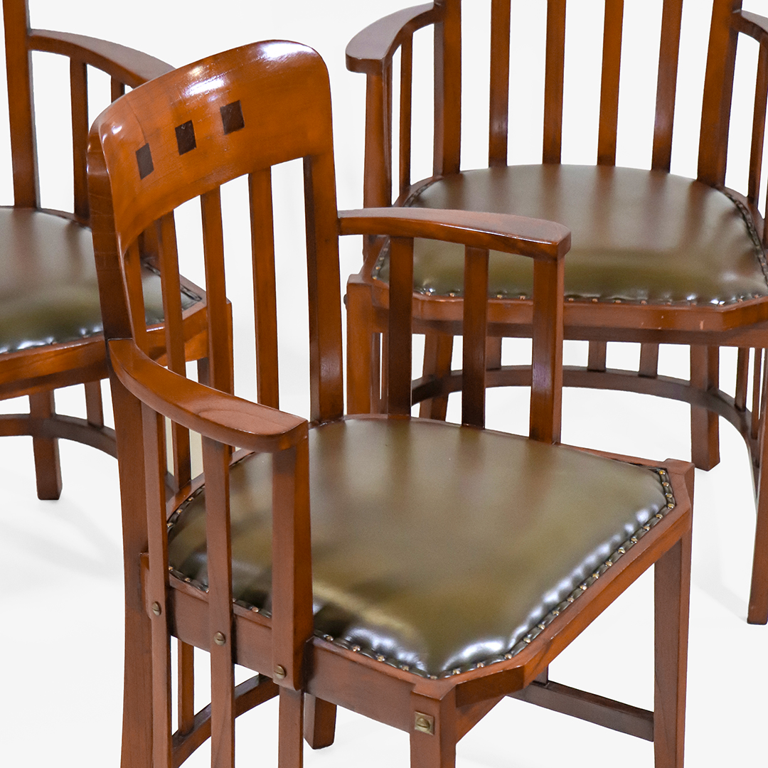 Armchair / Bürostuhl aus Mahagoni mit Leder, oliv