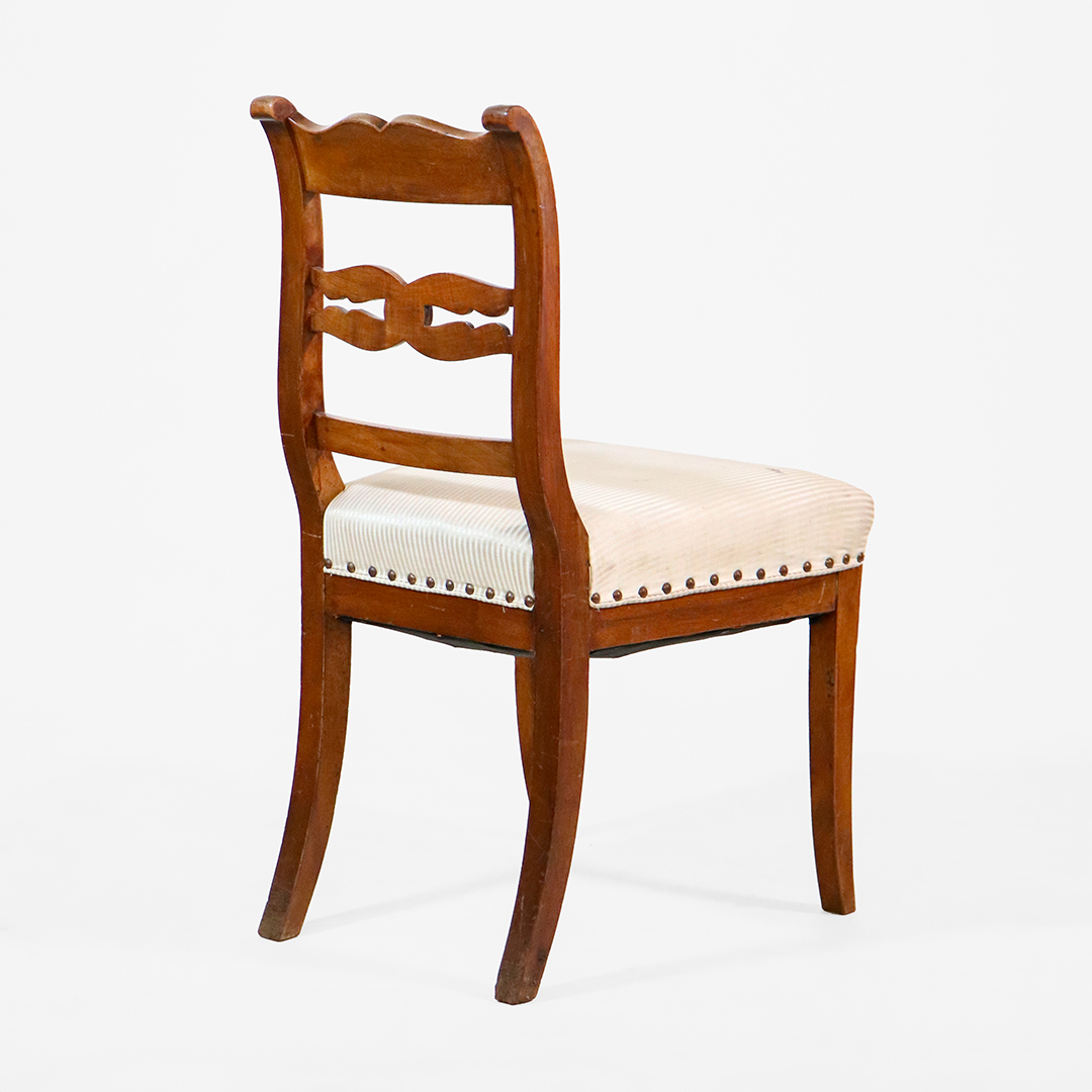 Die typisch elegant geschwungenen Hinterbeine (sabre legs) und die harmonisch gerundete Lehne zeigen deutlich den Einfluss des Regency Stils. Diese Stühle bringen britische Wohnkultur in Ihr Zuhause – charmant, leicht und charaktervoll, ganz wie man es von hochwertigen Regency Stühlen erwartet.