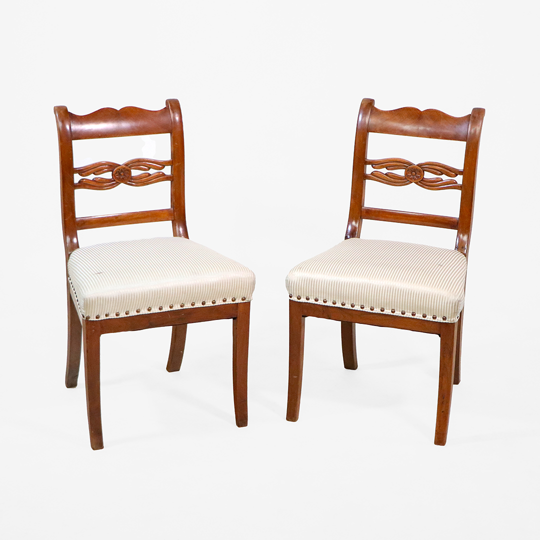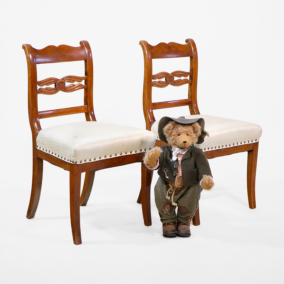 Dieses wunderschöne Paar englischer Regency Stühle überzeugt mit einer eleganten Linienführung, liebevollen Details und einer warmen Mahagoni-Tönung, die sofort ein stilvolles Ambiente schafft. Die Stühle wirken leicht, geschwungen und gleichzeitig stabil – genau das, was den originalen Regency Stil auszeichnet.