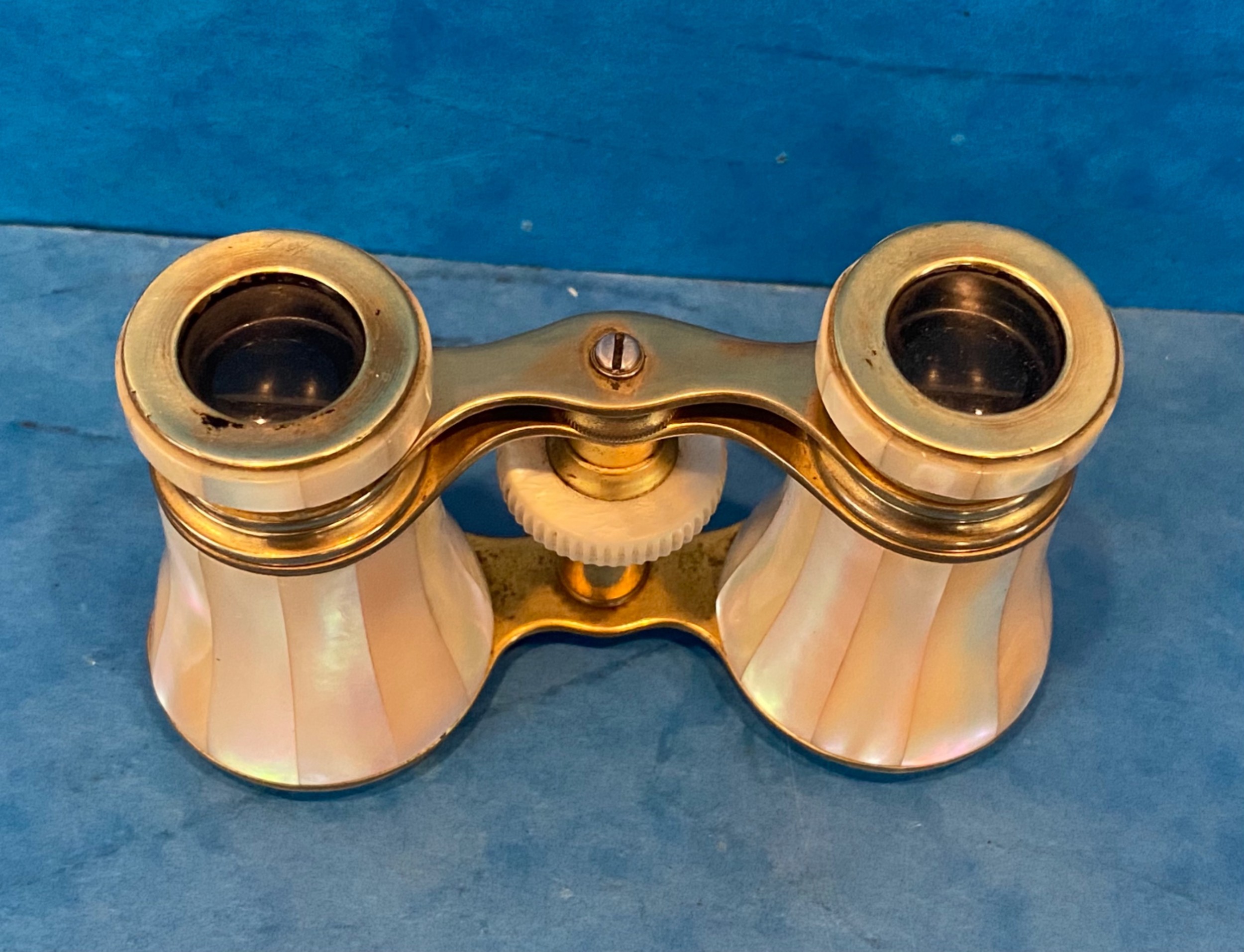 Antike viktorianische Operngläser aus vergoldetem Messing & Perlmutt (ca. 1860)