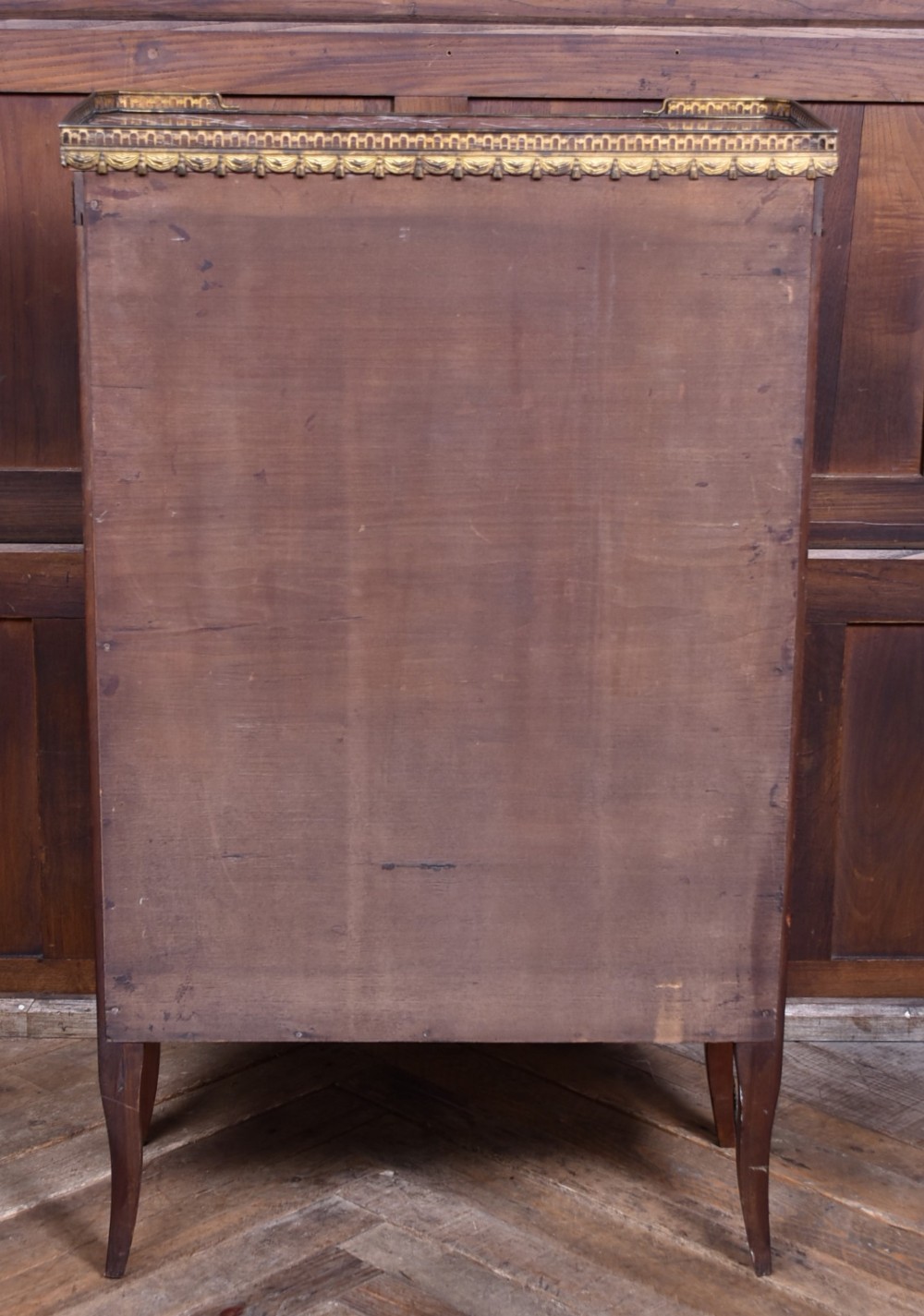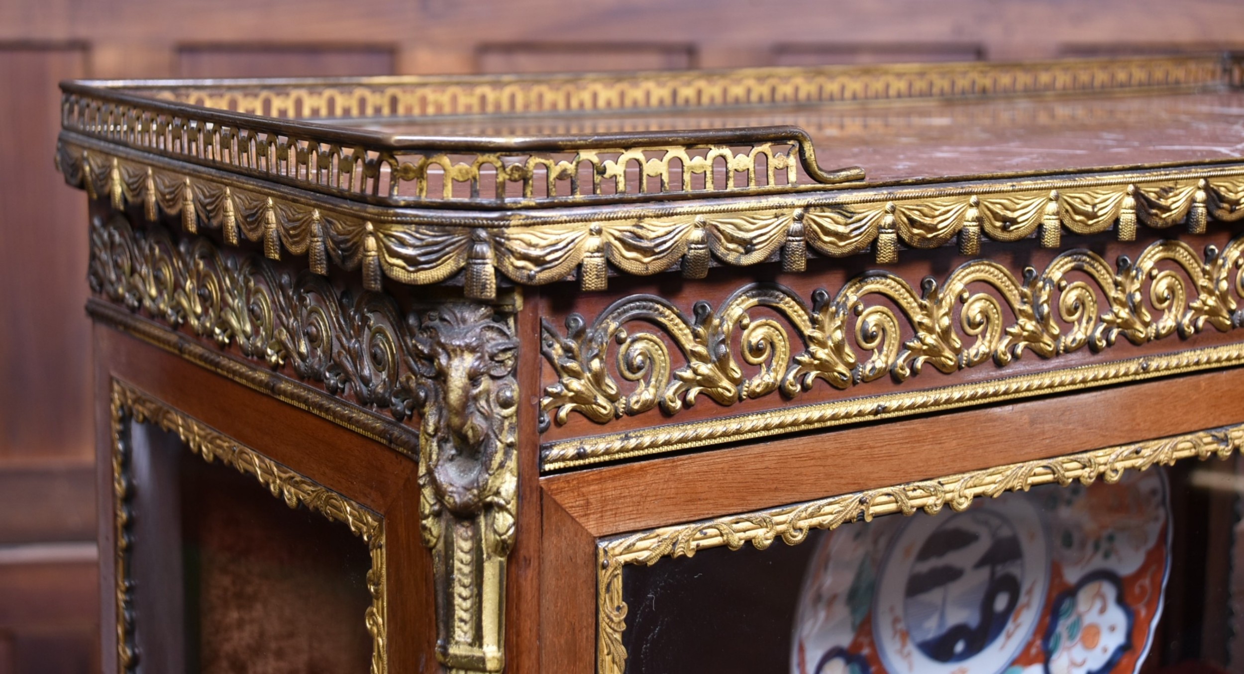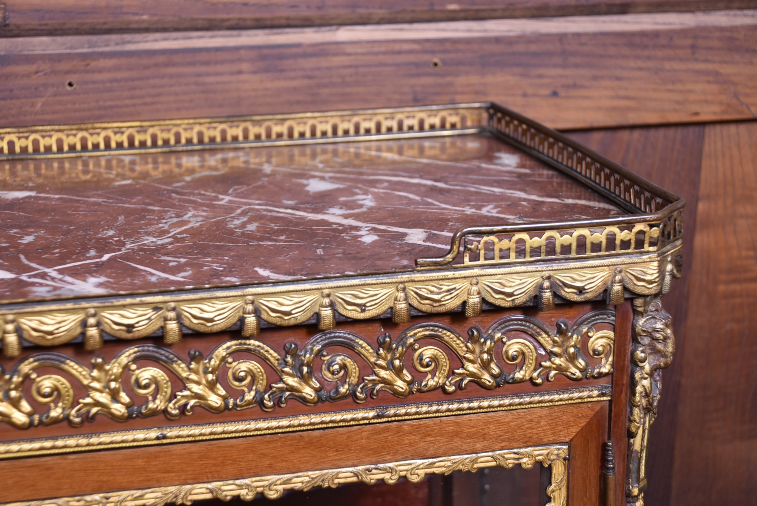 - Material: Holz mit roter Marmorplatte (Rouge-Marmor) und Messinggalerie