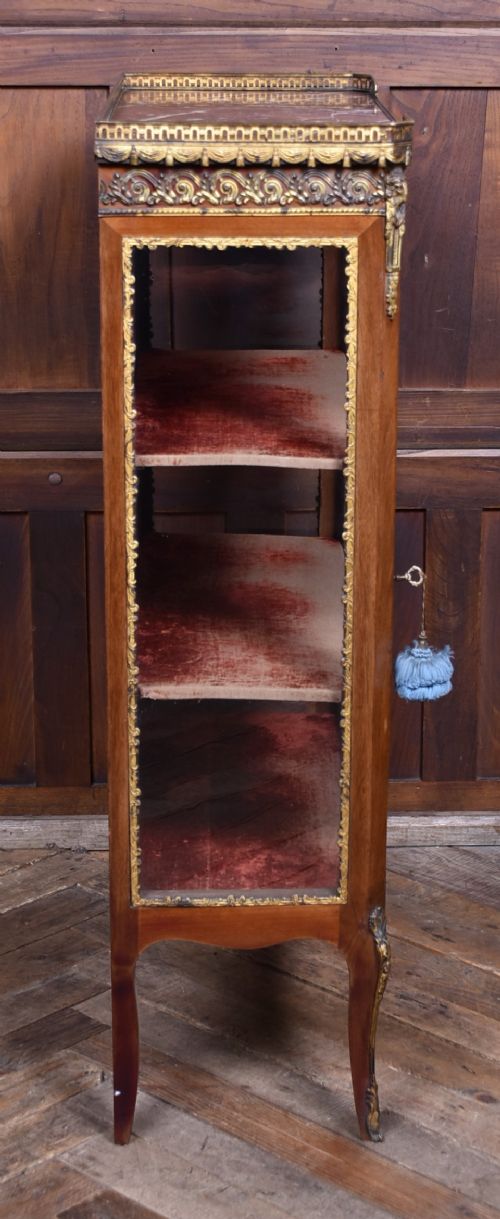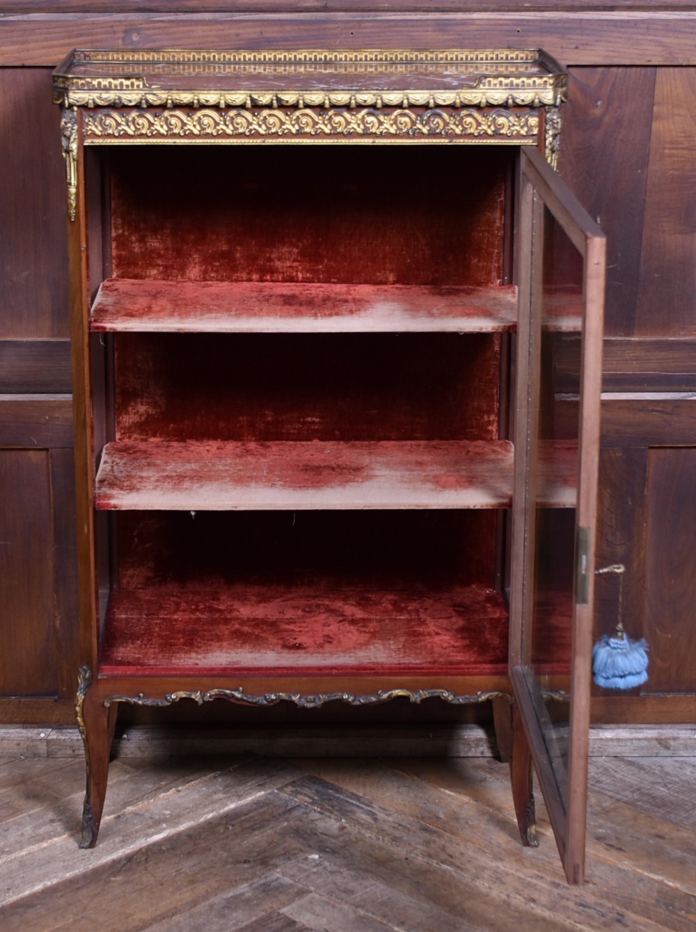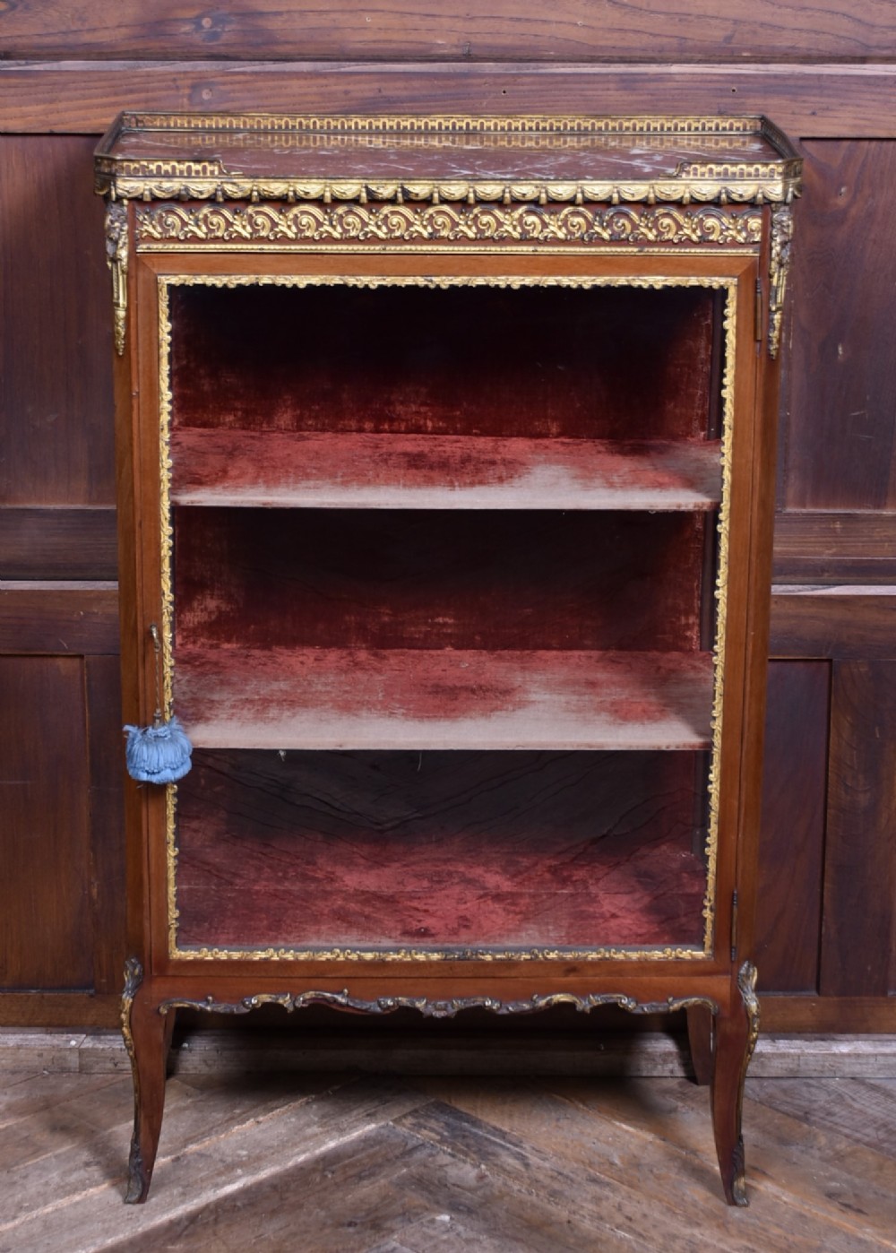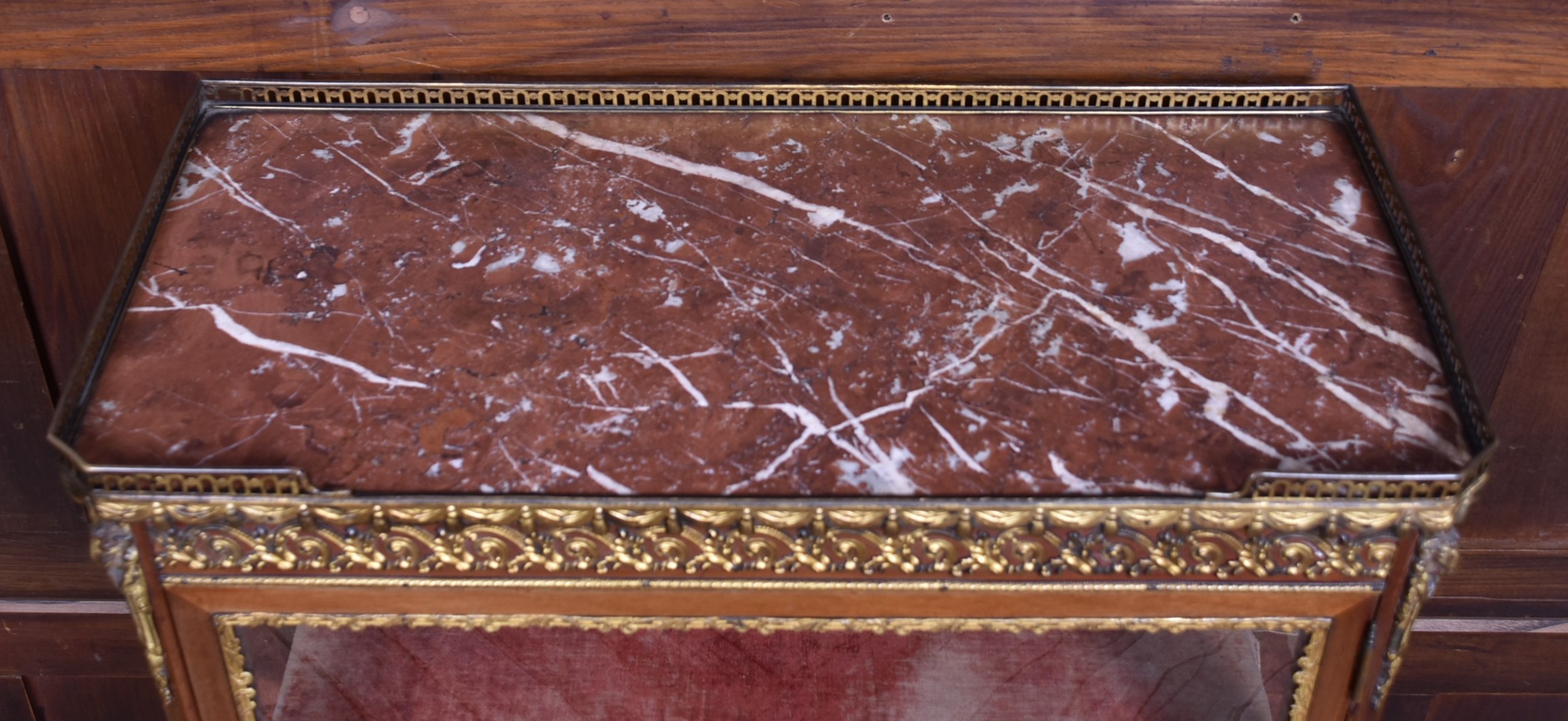 Antike Glasvitrine – Französischer Vitrinenschrank mit Marmorplatte - Antike Glasvitrine mit mit Marmor und Messing