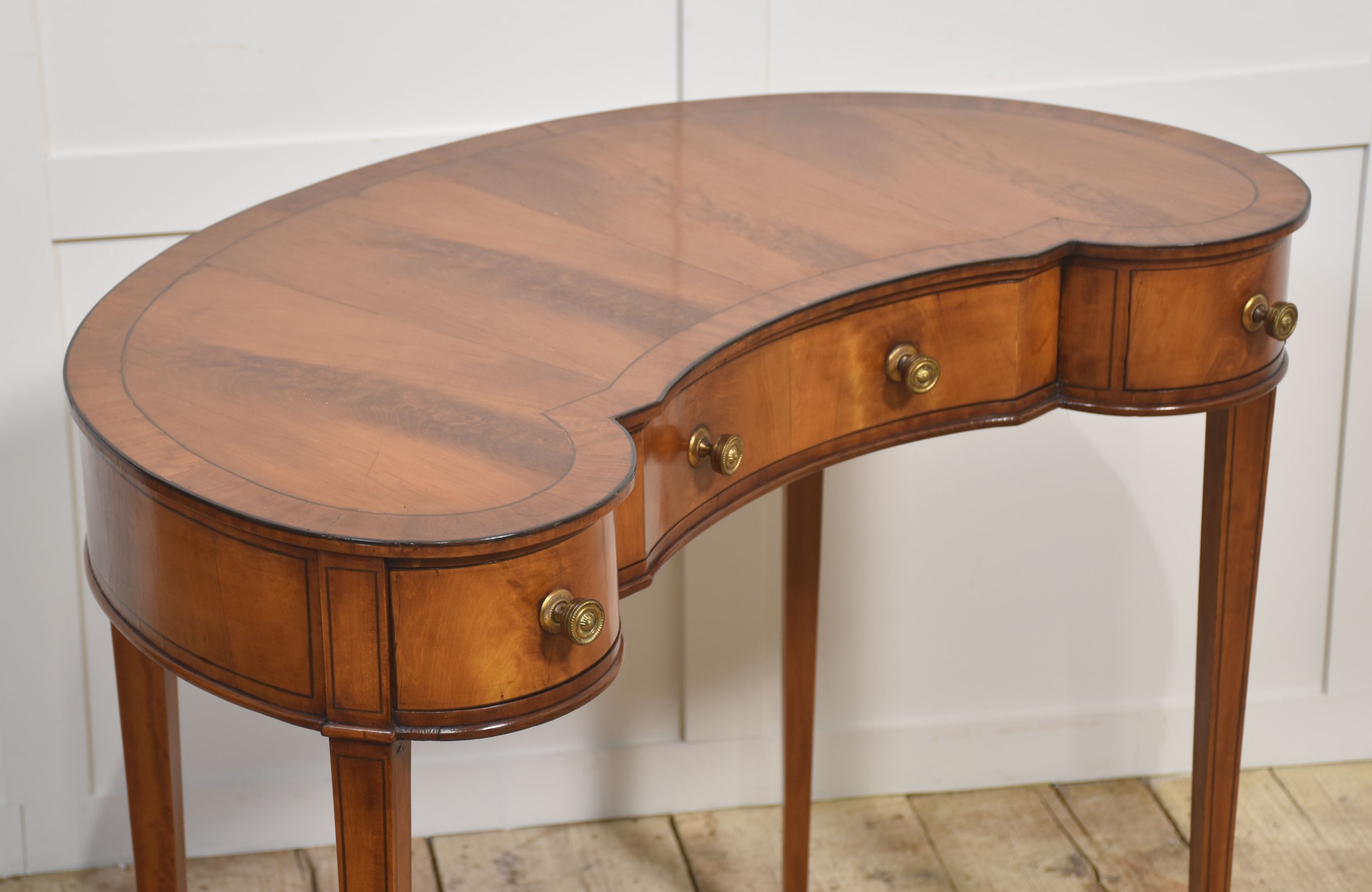 Dieser Lady’s Dressing Table stammt aus der Zeit um 1910 und überzeugt mit seiner nierenförmigen Tischplatte aus Mahagoni. Die geschwungene Form wirkt leicht und elegant – ein Möbelstück, das Funktionalität mit klassischem Design verbindet.