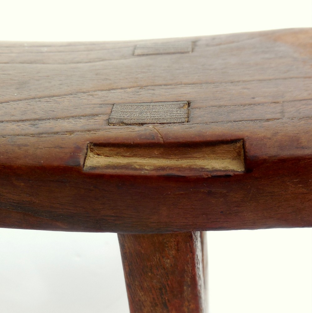 Diese antike asiatische Kopfstütze aus dem 19. Jahrhundert wurde aus Ulmenholz gefertigt und ist vollständig handgeschnitzt, ohne den Einsatz von Nägeln oder Metallteilen. Wahrscheinlich chinesischen oder japanischen Ursprungs, zeigt das Stück die feine Handwerkskunst jener Zeit.