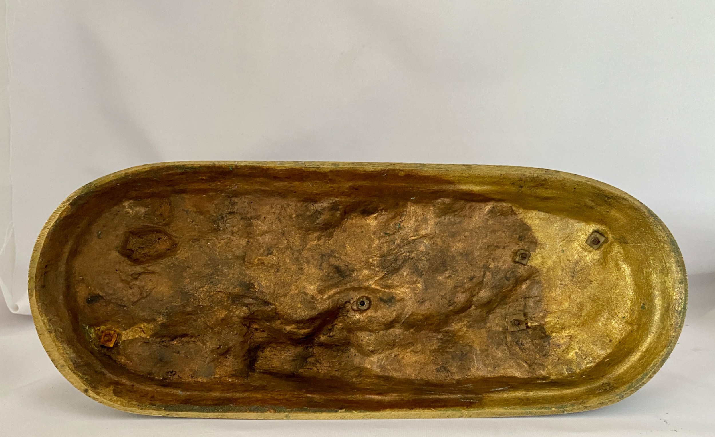 Besonders hervorzuheben ist die fein nachziselierte Oberfläche, die Tiefe und Realismus verleiht, sowie die originale Patina, die dem Stück Wärme und Authentizität schenkt.