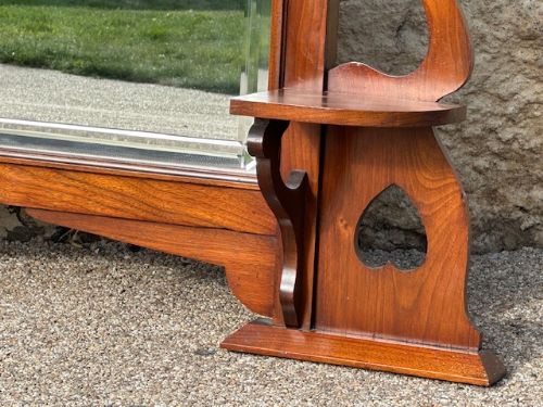 Antike Kaminspiegel aus massivem Nussbaum - Englischer Kaminspiegel - Antiker Kaminspiegel mit Herz-Ausschnitten und Ablagen