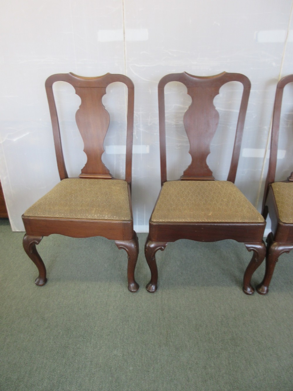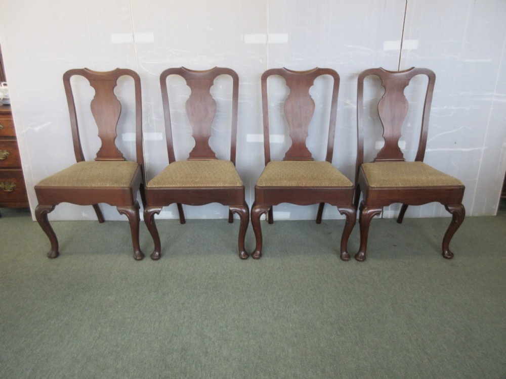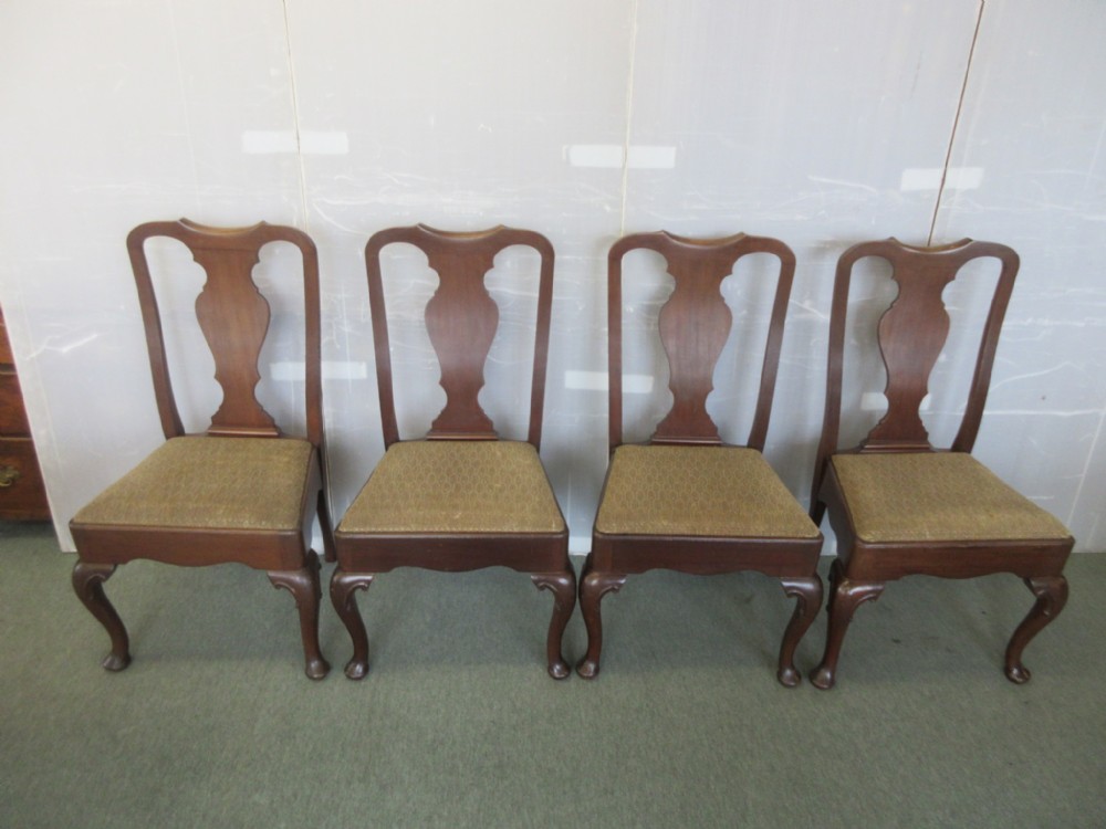 Antikes Set – 4 Mahagoni Esszimmerstühle im Queen Anne Design