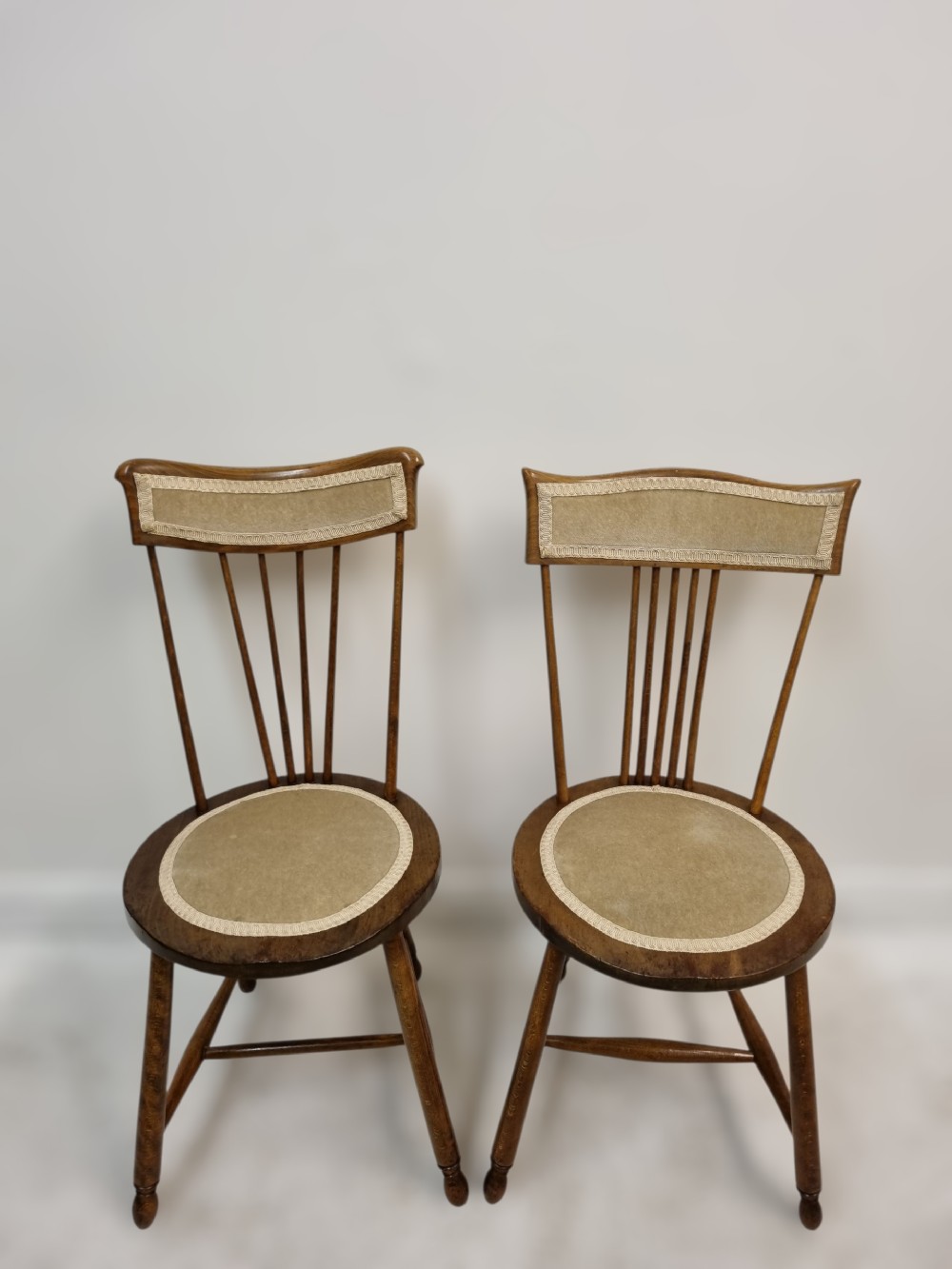 Charmante Schlafzimmerstühle im Landhausstil - Antikes Stuhl-Duo mit Spindle Rückenlehne - Vintage Akzentstühle mit Penny Seats - Dekoratives Stuhl-Paar Antik