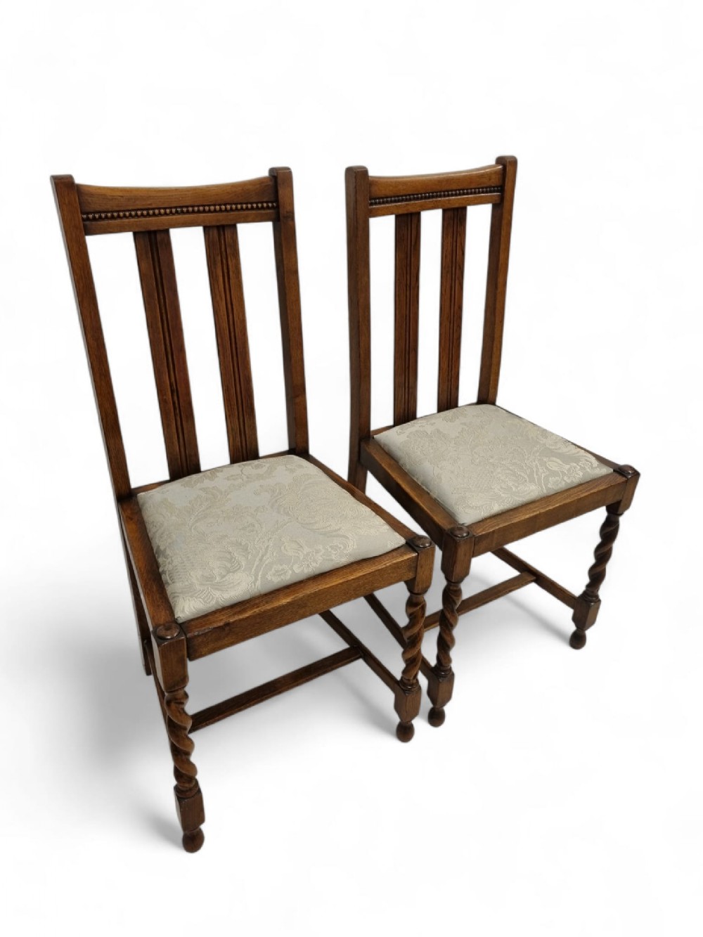 Antikes Stuhl Paar mit neuer Polsterung - Stilvolle Esszimmerstühle aus massiver Eiche