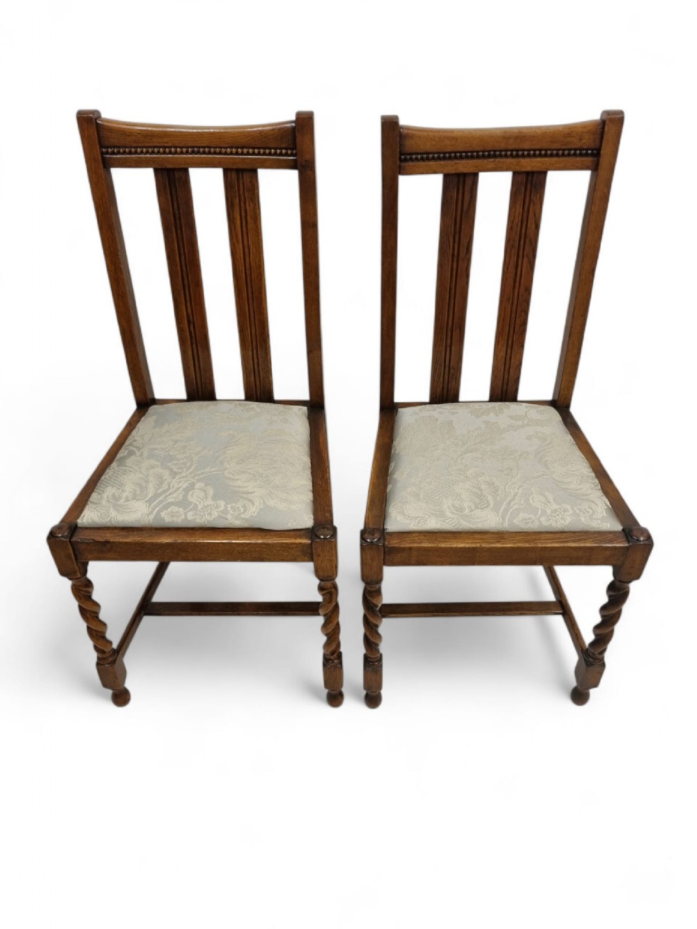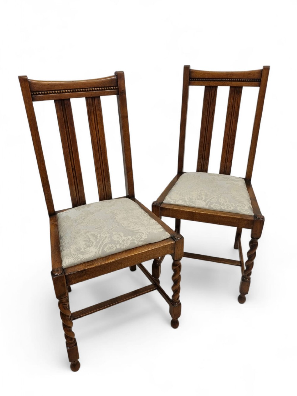 Paar antiker Edwardian Esszimmerstühle aus Eiche