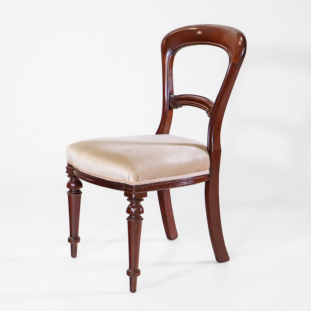• Viktorianisches Design: Authentische Stühle aus der viktorianischen Ära, die durch ihre edlen Ballonrückenlehnen und geschwungenen Formen bestechen.