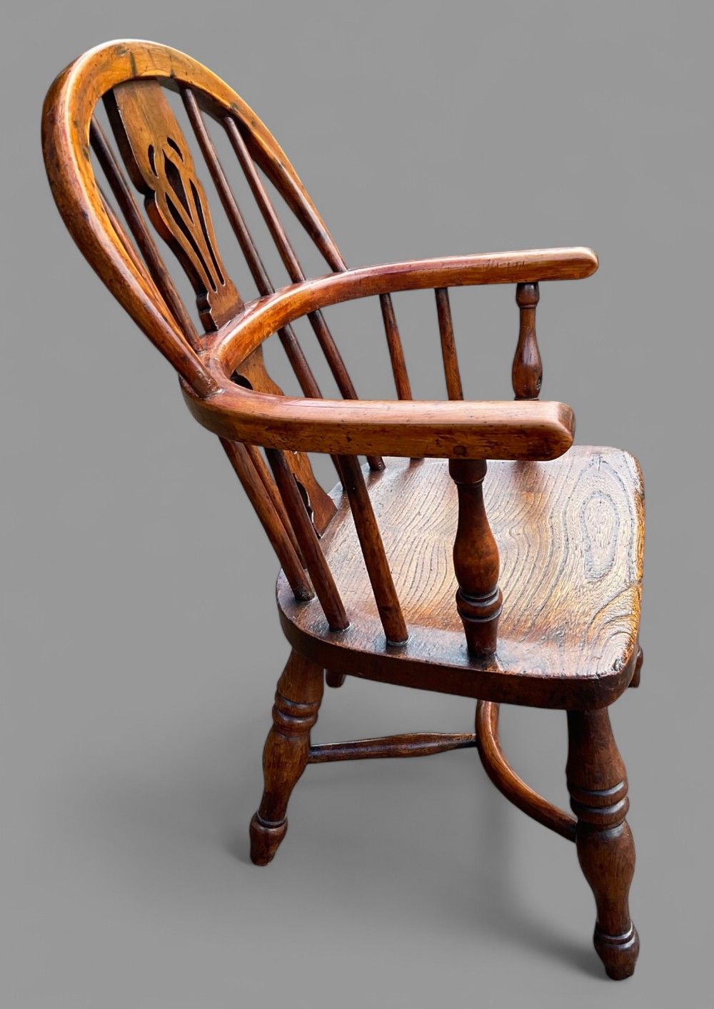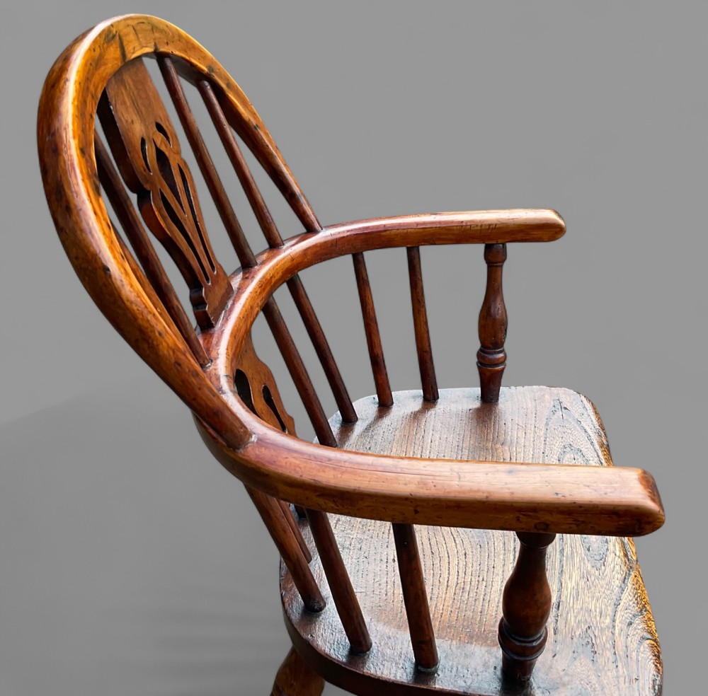 Windsor Kinderstuhl antik aus Eibe, 19. Jahrhundert