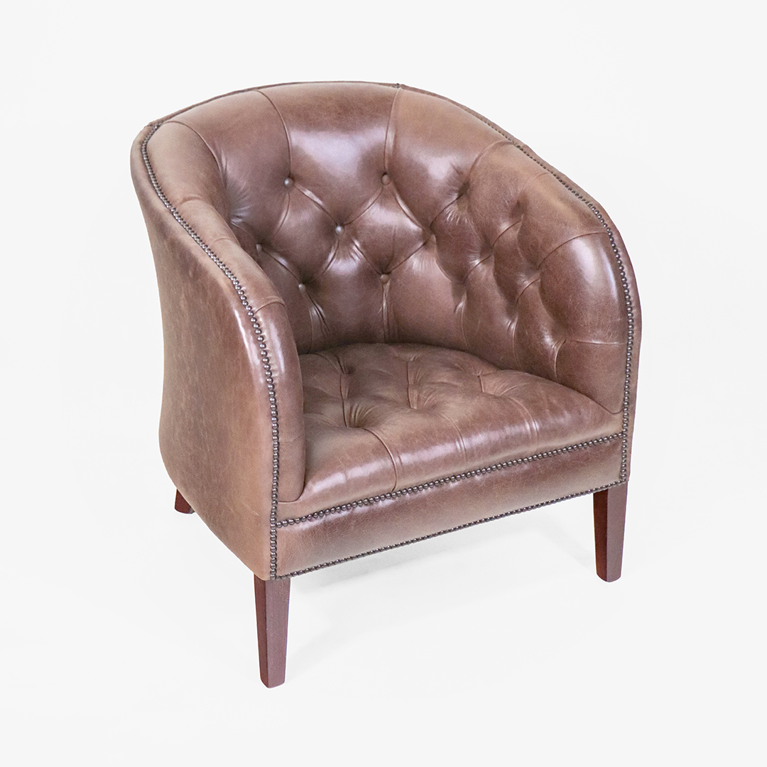 Englischer Clubsessel „Perth“ – Original Chesterfield Ledersessel aus braunem Anilinleder
