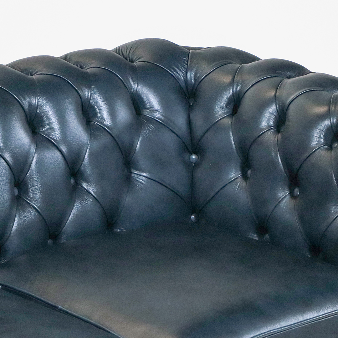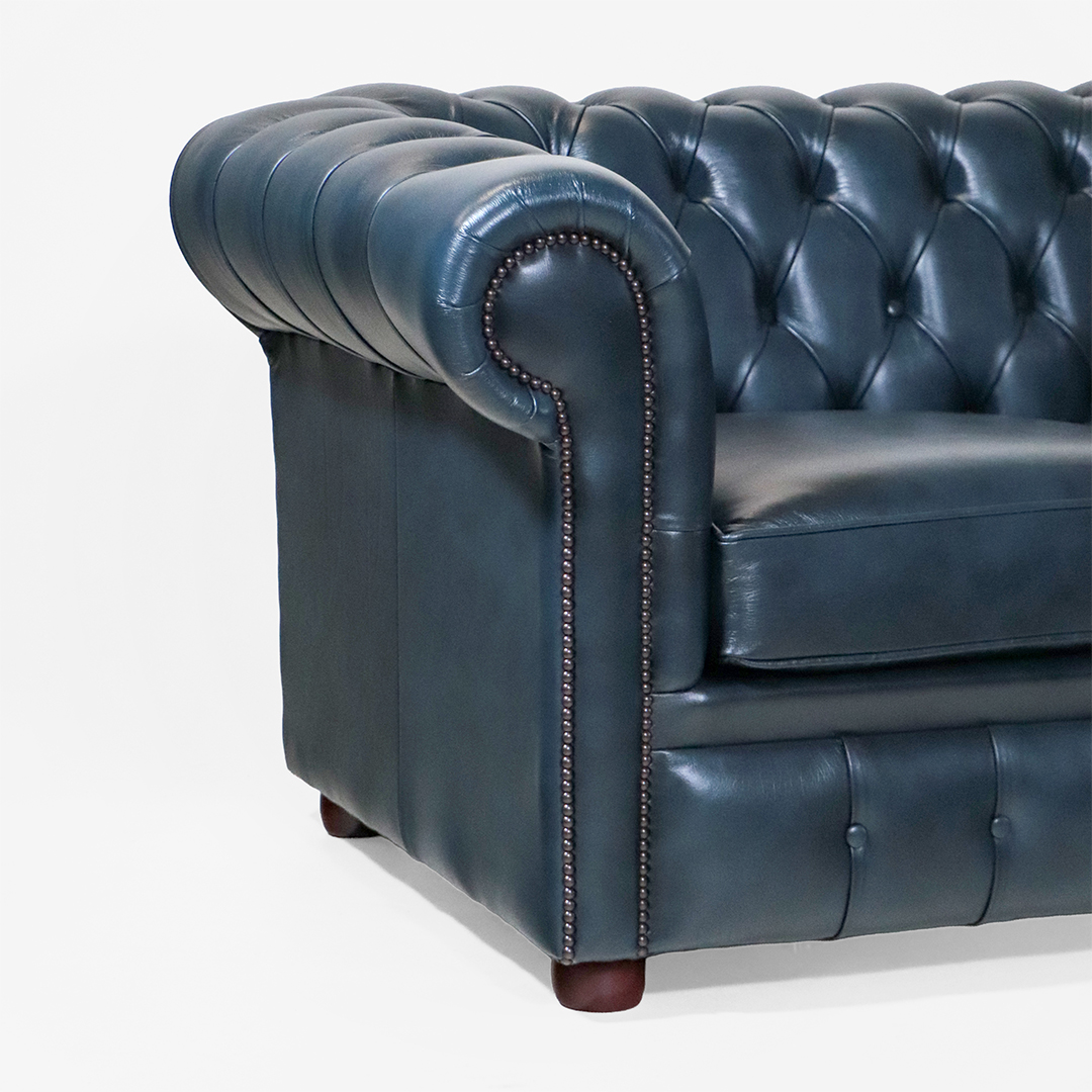 Chesterfield Schlafsofa 2,5-Sitzer „Tudor“ – blaues Ledersofa mit Schlaffunktion aus England