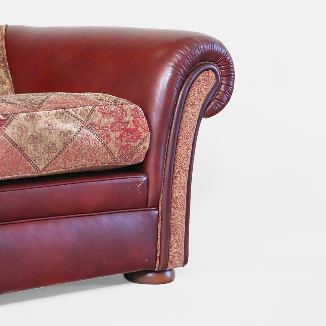 Handgefertigtes 3er Sofa aus UK mit Leder und Stoff
