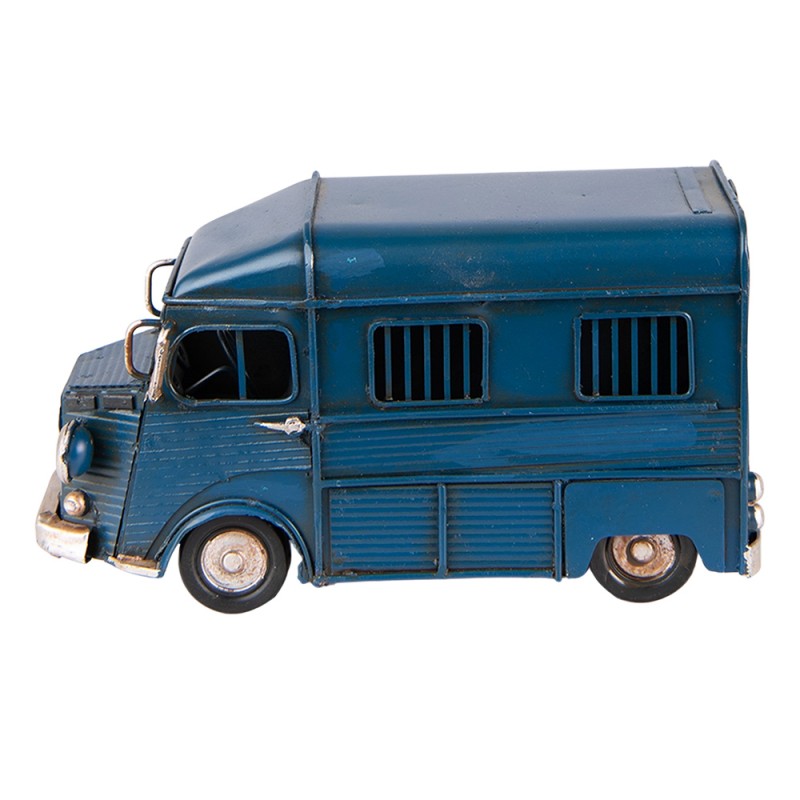 Clayre & Eef Deko Mini Modell 16x7x9 cm Blau Metall Deko Accessoires Dekoration Modell Bus