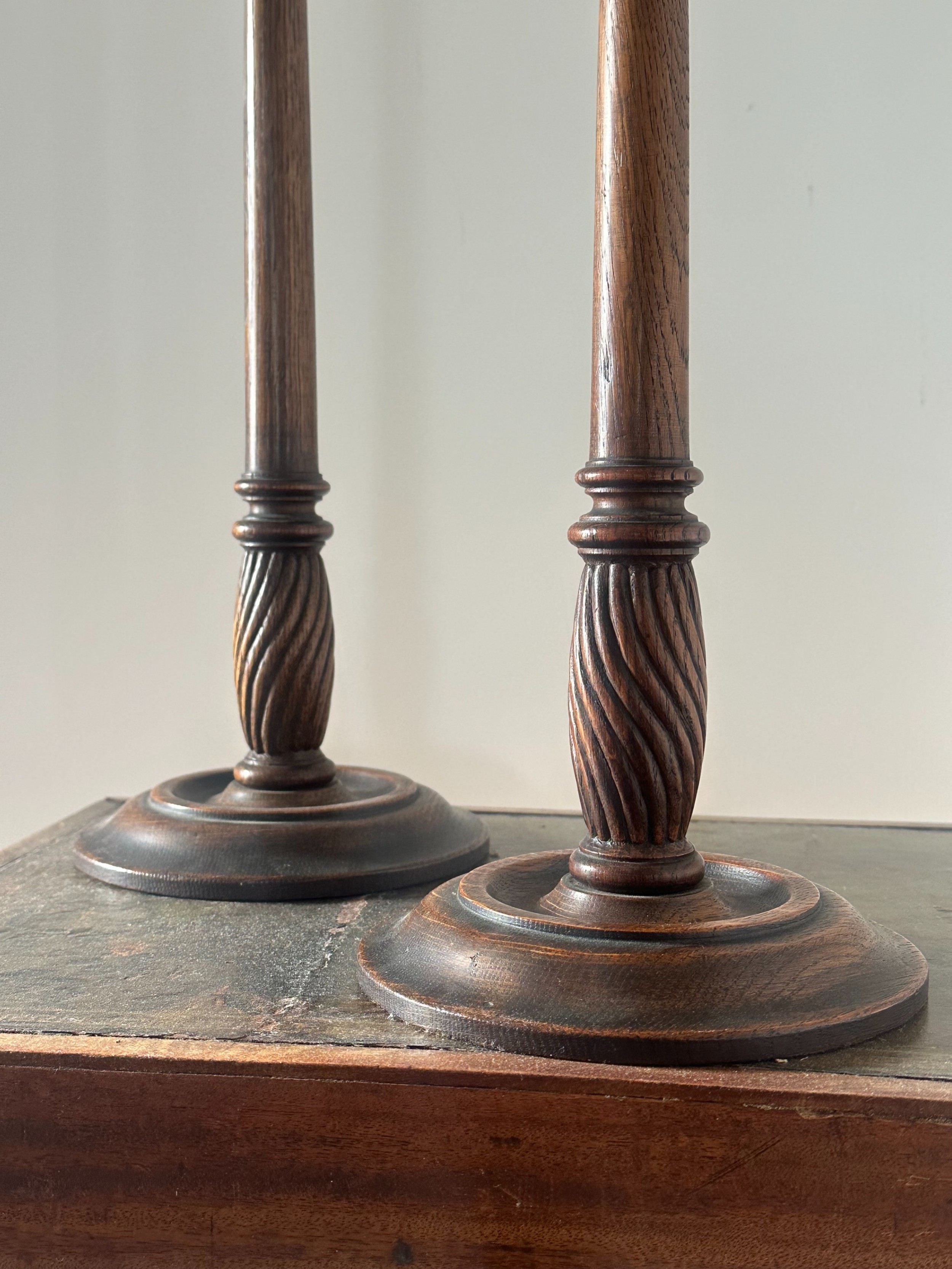 Großes Paar Kerzenhalter im George III Stil aus Eiche – ca. 1900