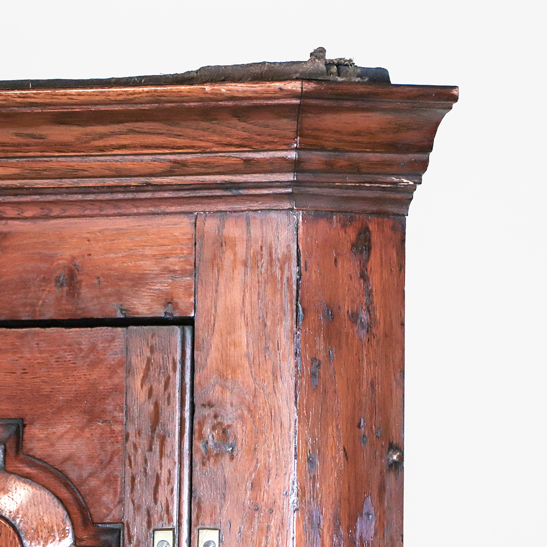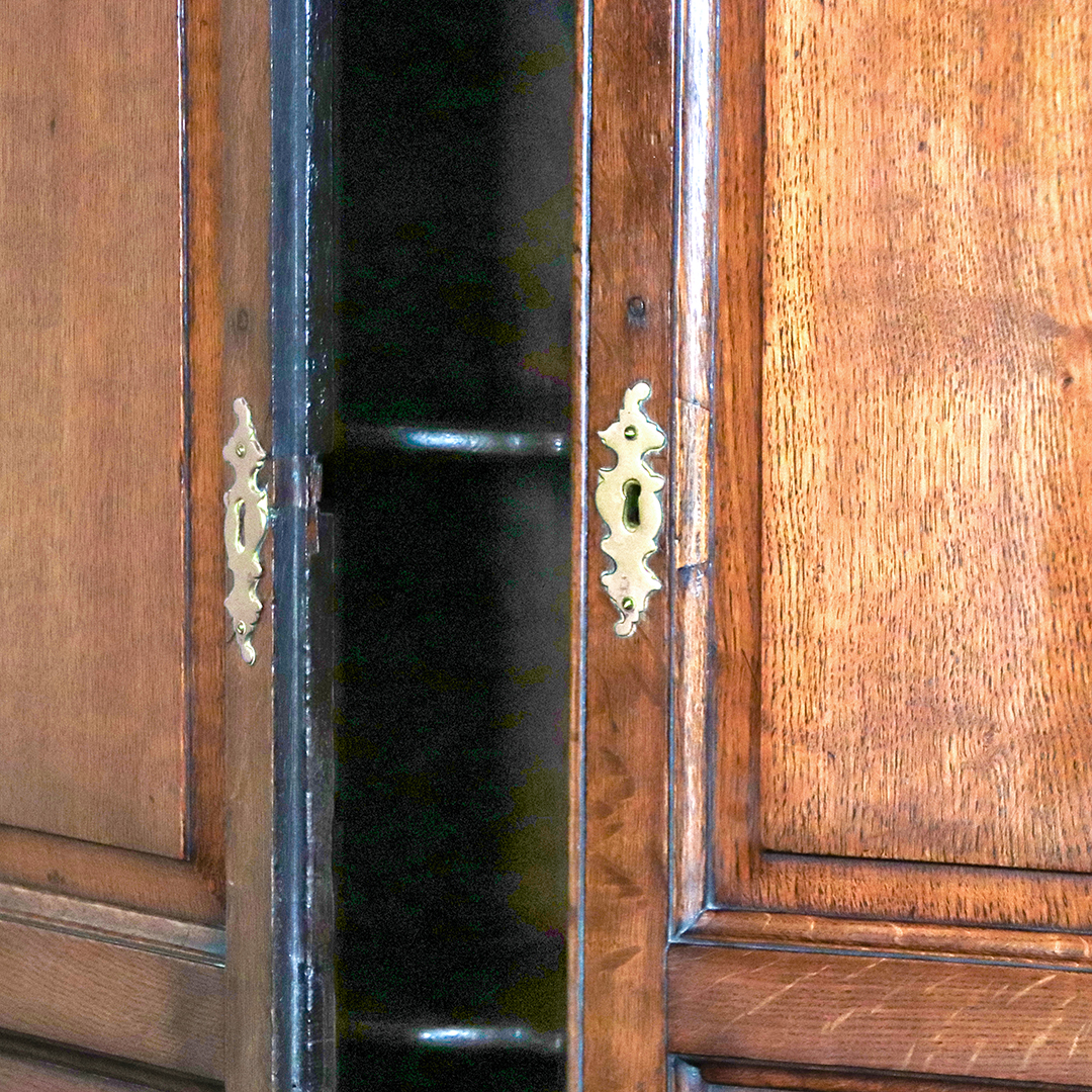 Durch seine Proportionen, die solide Bauweise und die warm wirkende Eiche ist dieser englische Eckschrank aus der Georgian Zeit sowohl ein praktisches Aufbewahrungsmöbel als auch ein dekoratives Stück historischer Einrichtungskultur.