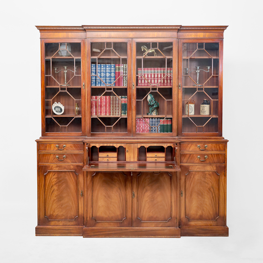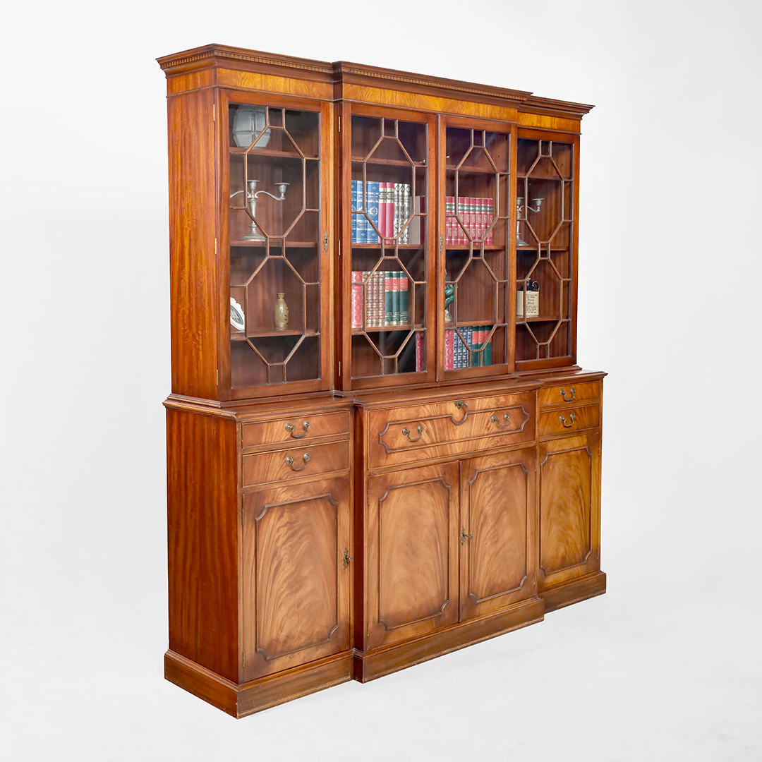 Breakfront Bookcase – Handgefertigter englischer Bücherschrank Mahagoni