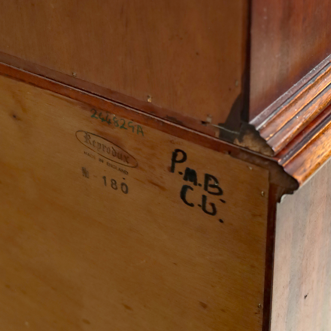 Mit seiner klassisch-symmetrischen Form, den feinen Profilierungen und der originalen englischen Anmutung ist dieser Bücherschrank im englischen Stil ein echtes Statement-Piece für Liebhaber traditioneller Möbelkultur.
