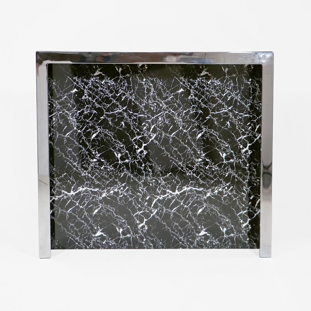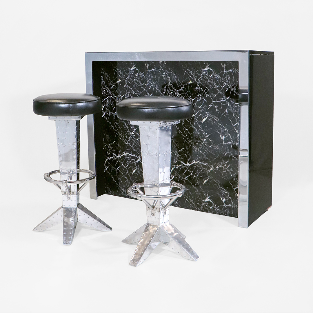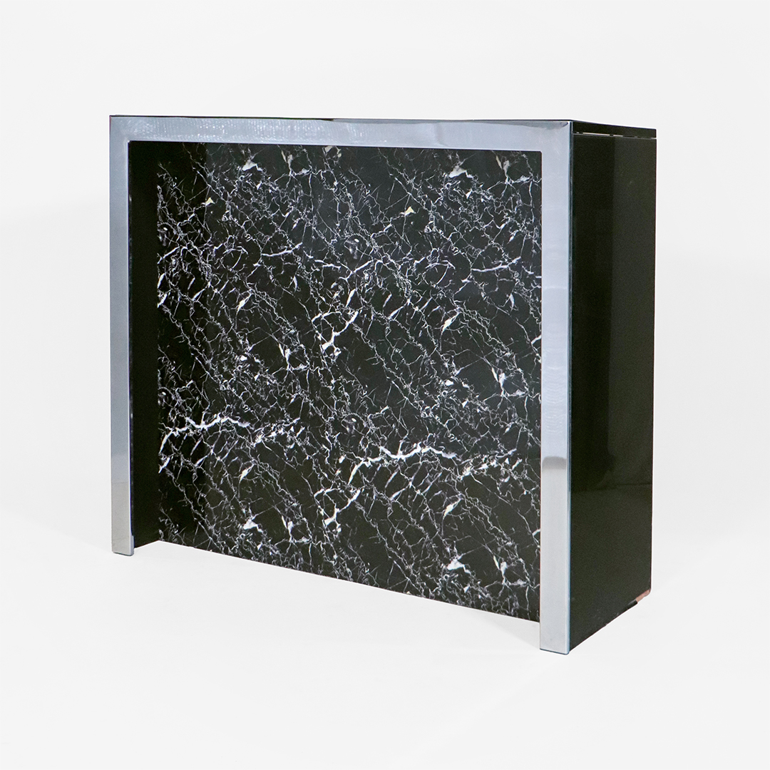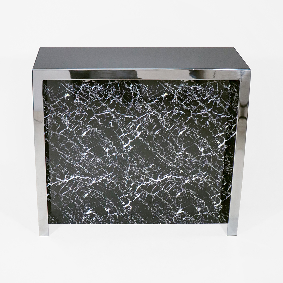 Art Deco Stil Bar aus Edelstahl – Silber-schwarze Minibar mit Marmoroptik