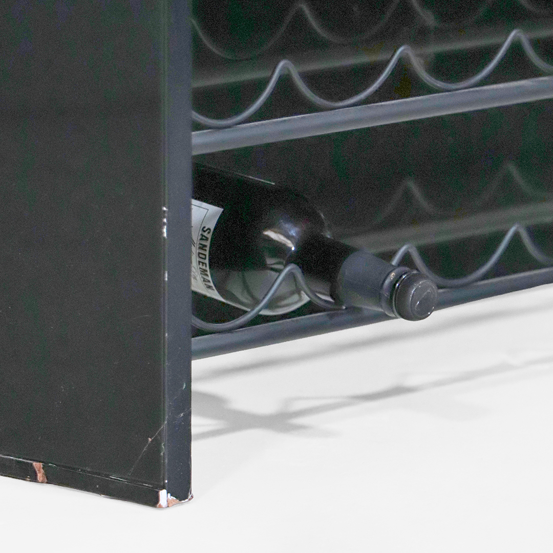 Mit einer Kapazität von bis zu 20 Flaschen eignet sich der Barschrank hervorragend für private Cocktailbars oder stilvolle Empfangsbereiche. Trotz der großzügigen Ausstattung bleibt das Möbelstück durch seine klaren Proportionen kompakt und vielseitig platzierbar.