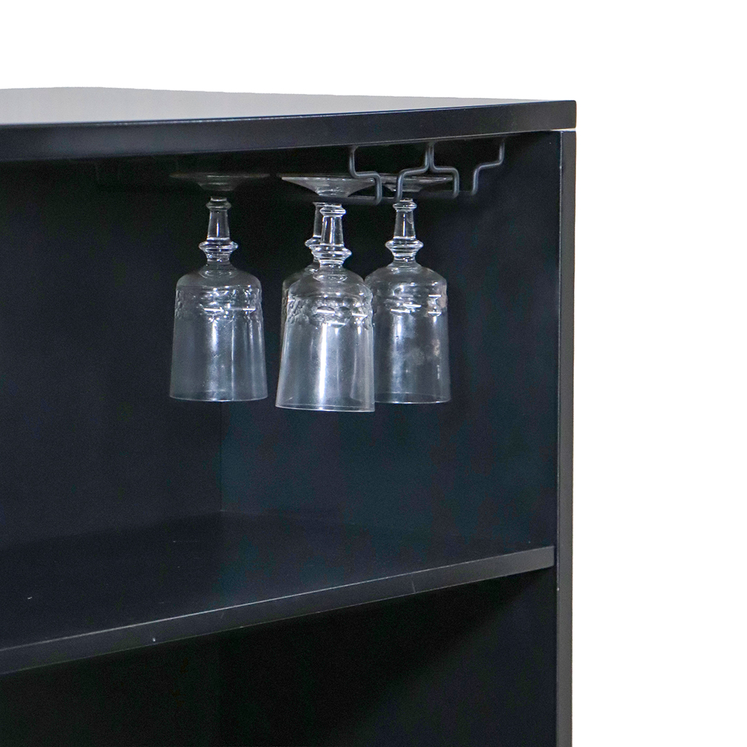 Im Innenbereich sorgen schwarze Glasböden mit 5 mm Stärke für eine edle Präsentation Ihrer Flaschen und Baraccessoires. Die Materialien sind pflegeleicht und eignen sich ideal für den Einsatz als Hausbar oder Lounge-Bar.