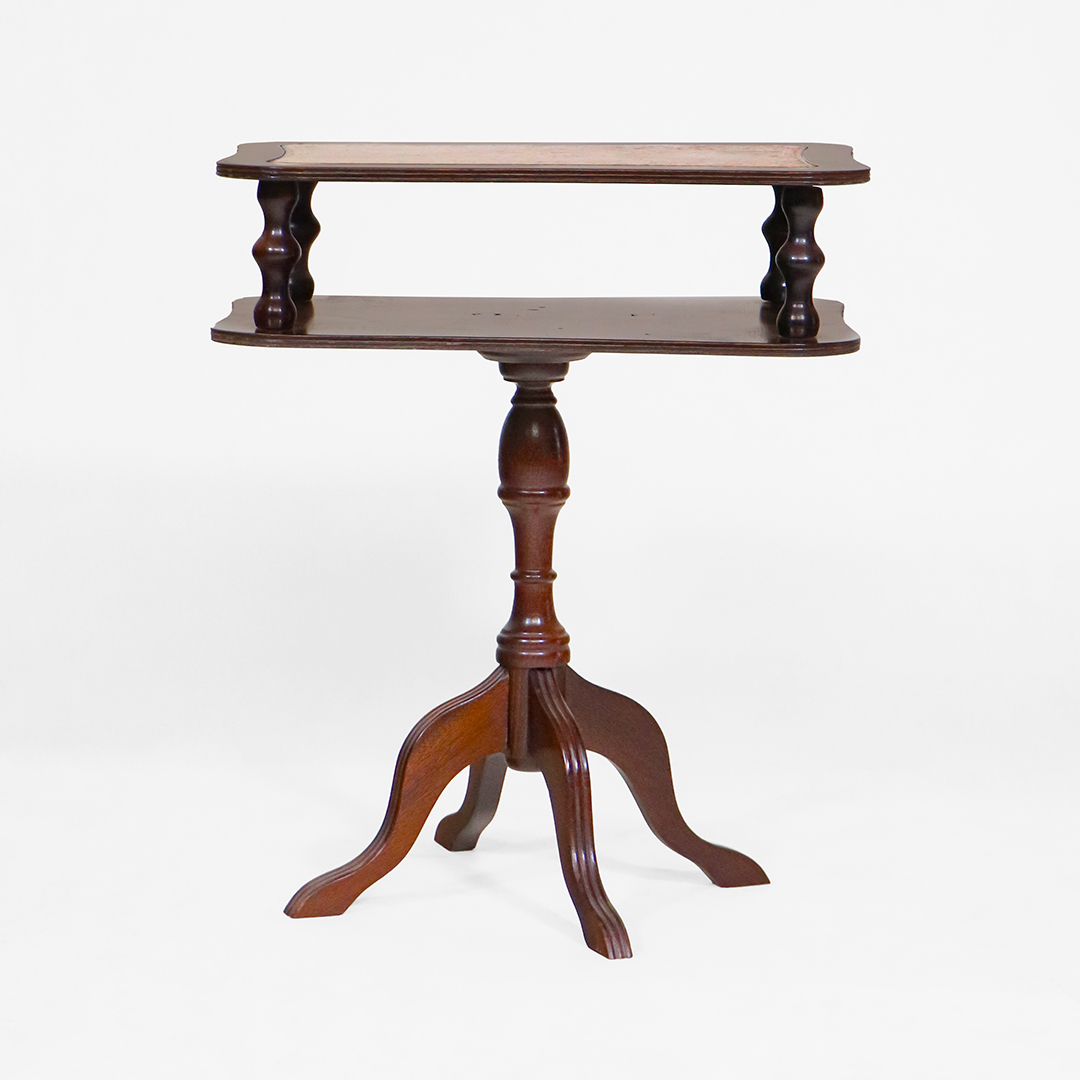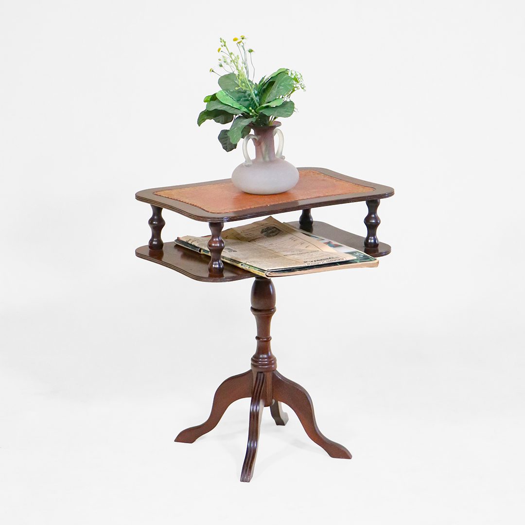 Englischer Beistelltisch mit zwei Ablagen aus Mahagoni – funktional, dekorativ und zeitlos