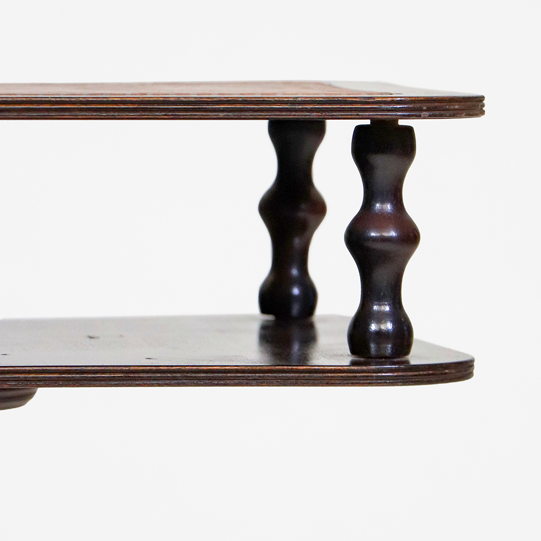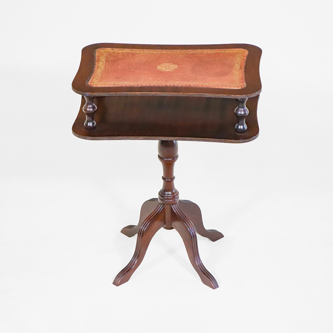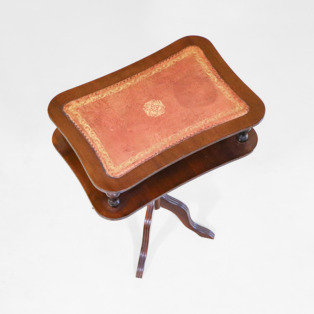 Traditioneller Beistelltisch mit zwei Ebenen und Lederdekor