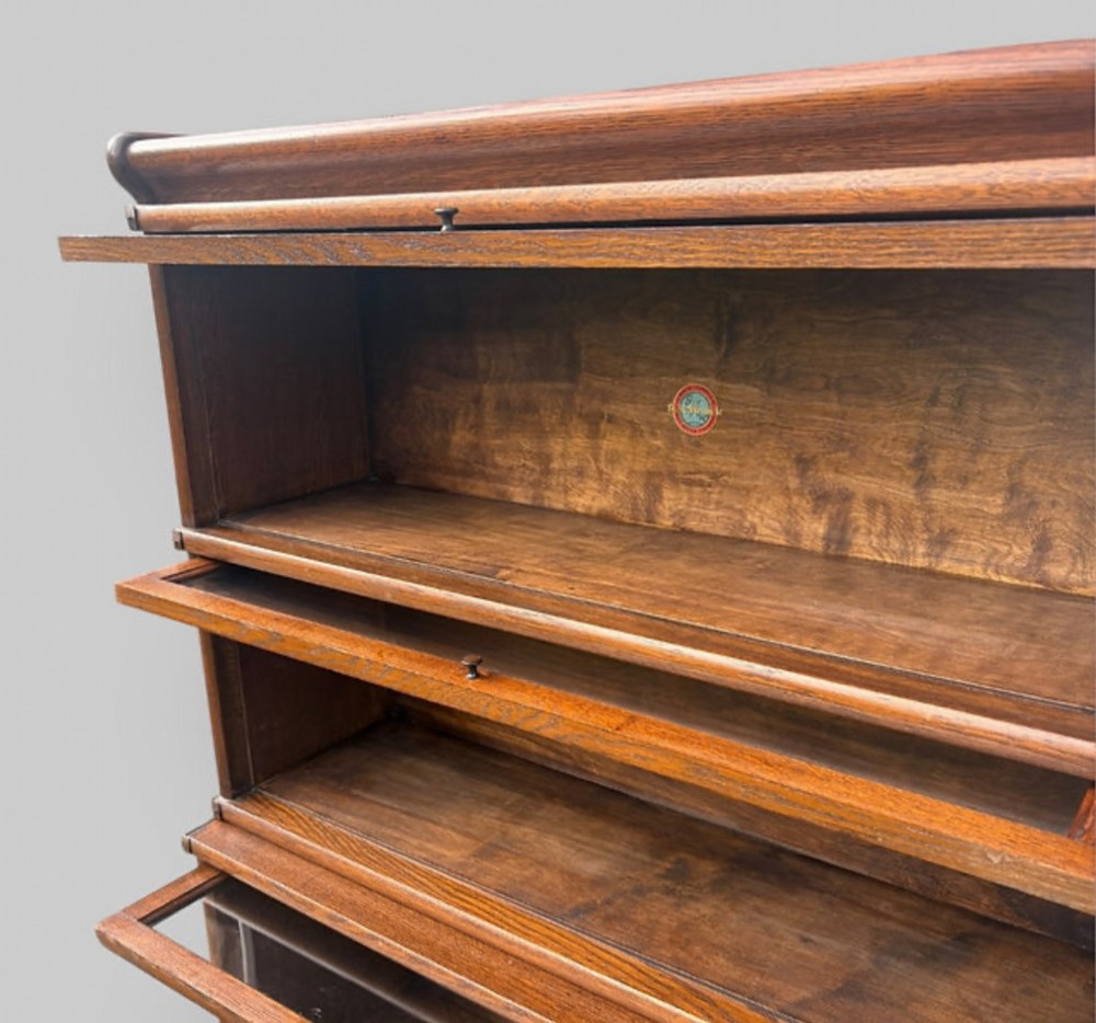 Das originale Herstelleretikett von Globe Wernicke ist erhalten und bestätigt die Authentizität dieses außergewöhnlichen Stücks.