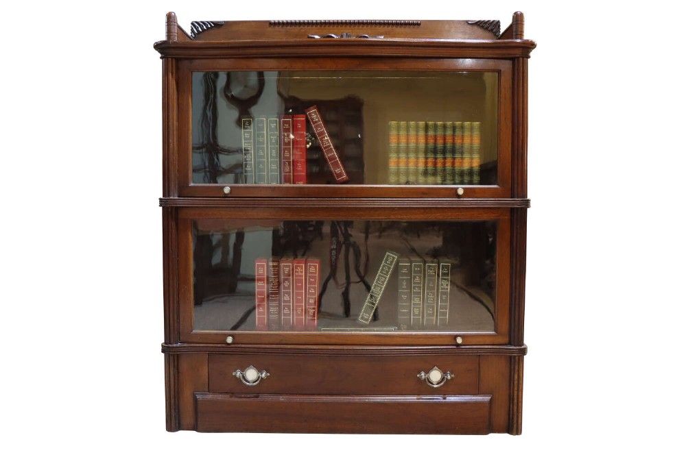 Antiker Globe Wernicke Bücherschrank – Mahagoni Anwalt-Bücherregal mit Glasfächern & Schublade um 1900