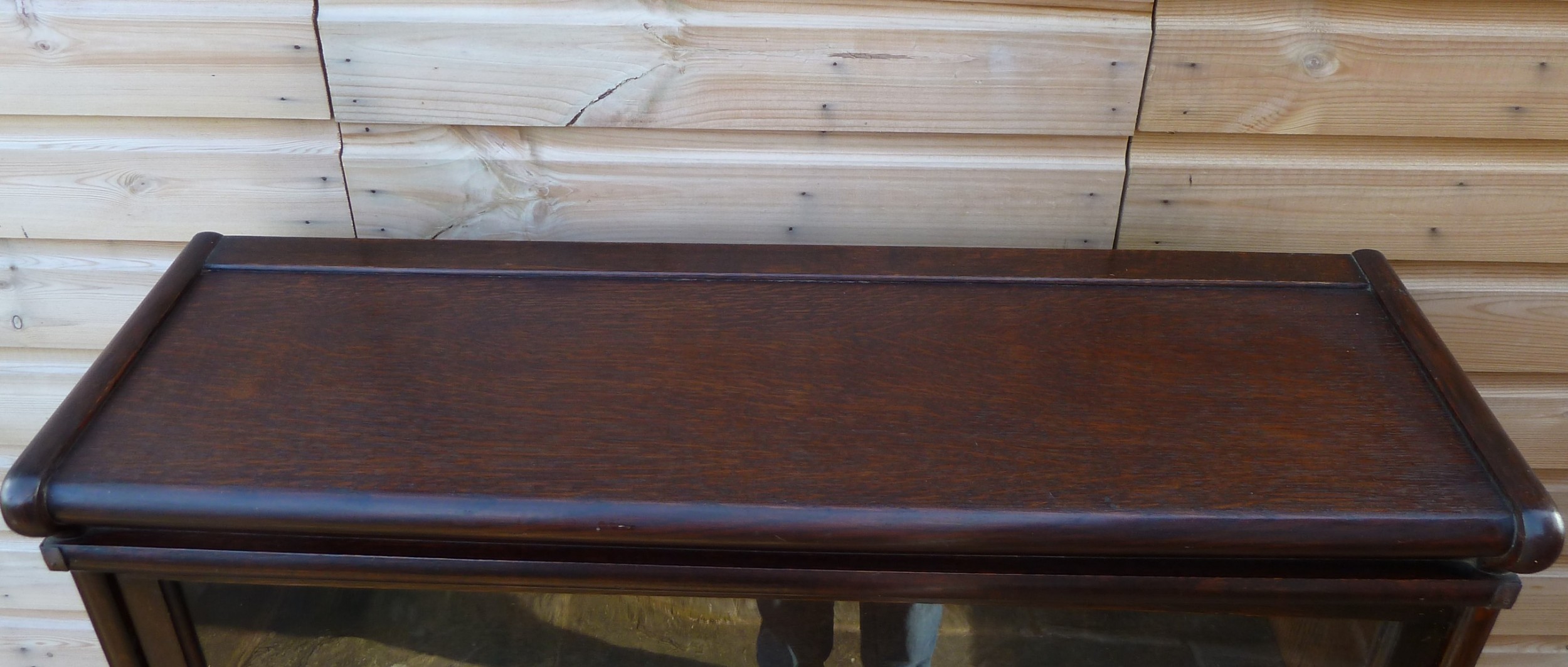 Mit seiner praktischen Stapelbauweise lässt sich der Schrank leicht transportieren und flexibel aufstellen. Ideal für Bücher, Akten, Sammlungen oder dekorative Objekte. Dieses Stück kombiniert klassische Eleganz mit praktischer Funktion, wie sie nur echte Globe Wernicke gebraucht Modelle bieten.