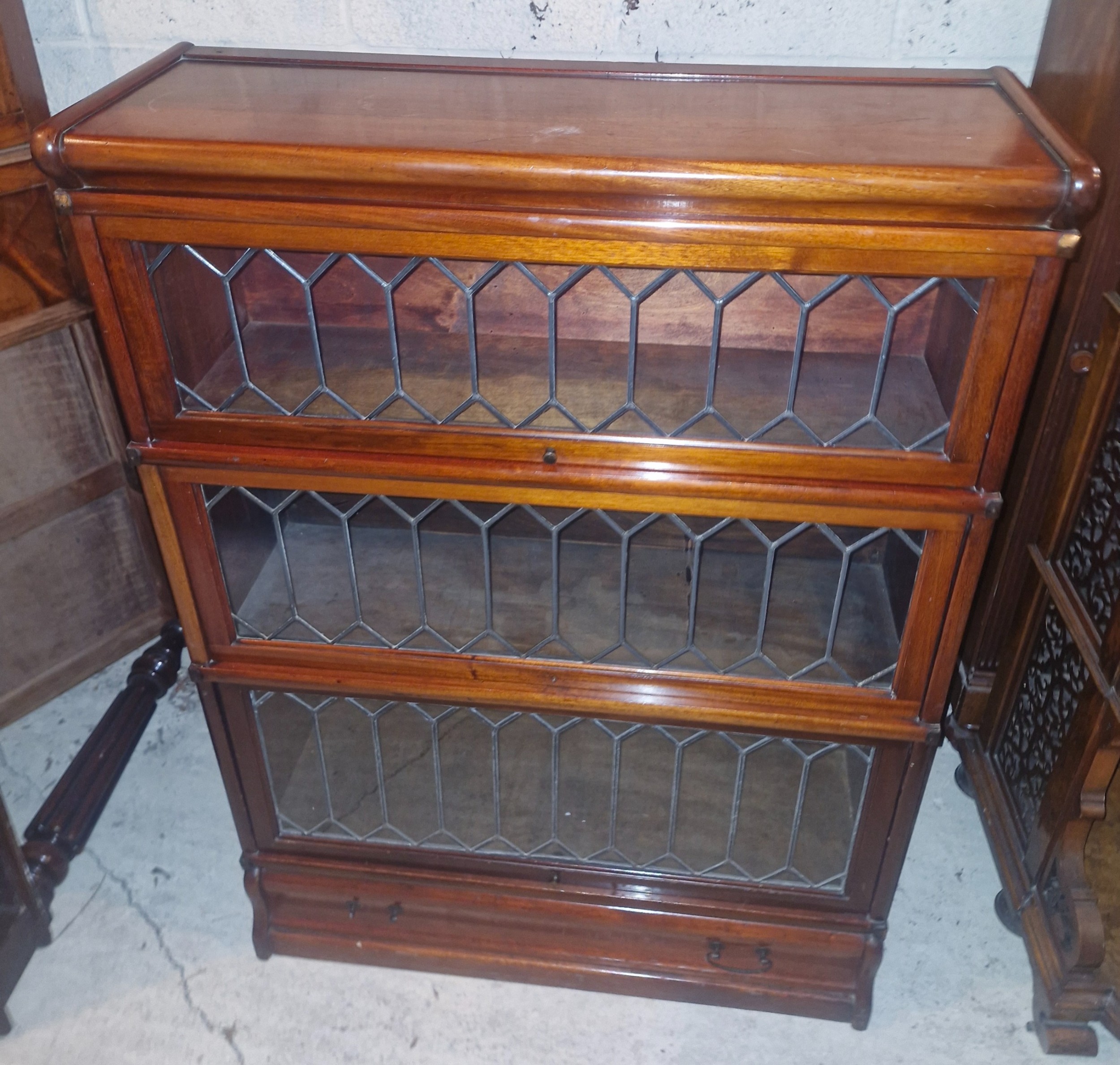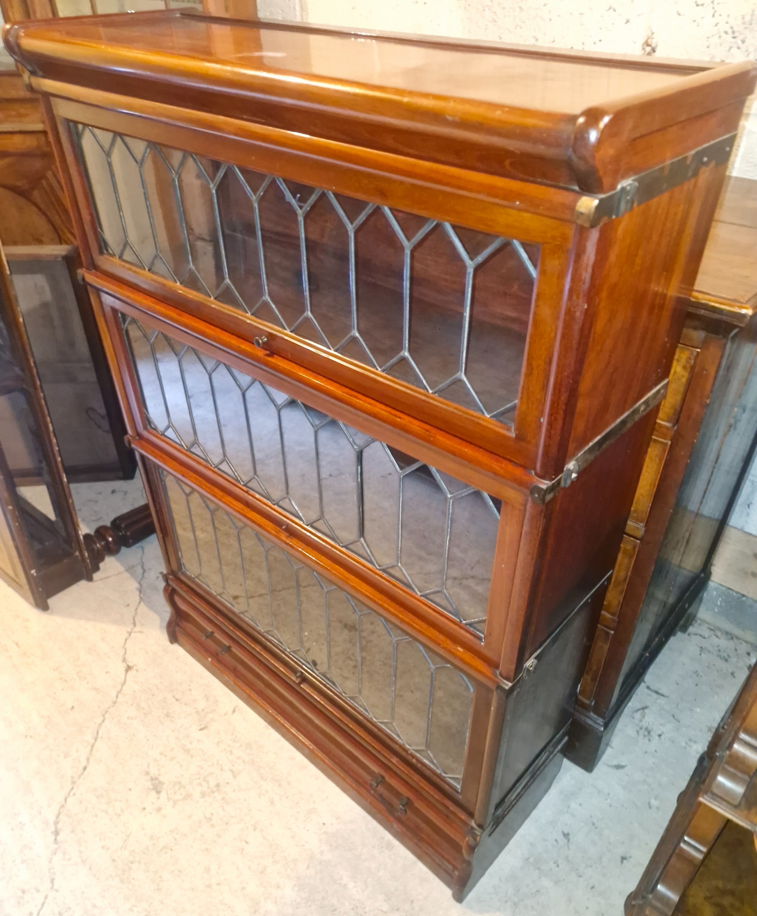 Seltenes antikes Bücherregal aus Mahagoni – Globe Wernicke mit Bleiglasfronten - Mahagoni Vitrinenregal - Globe Wernicke Antik mit Glas und Schublade
