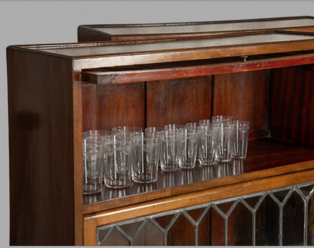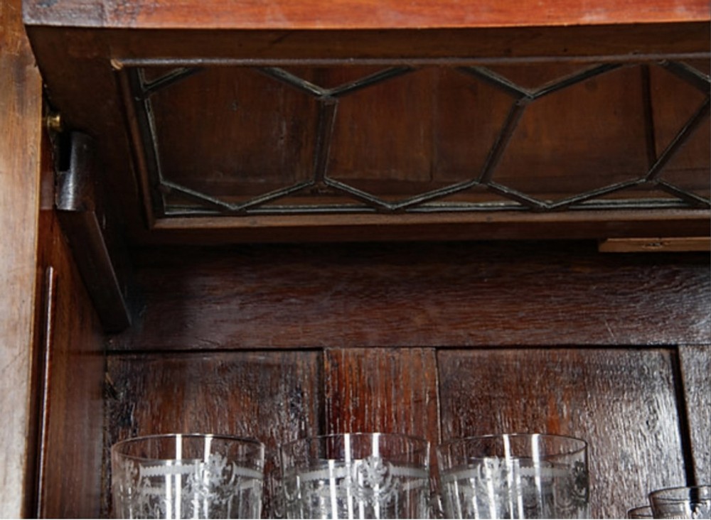 - Fronten: originale Bleiglastüren mit geometrischem Muster