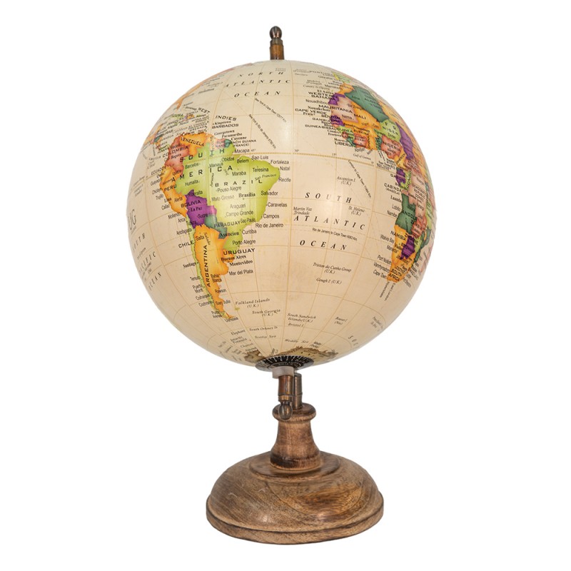 Clayre & Eef Globus 22x37 cm Beige Braun Holz Metall