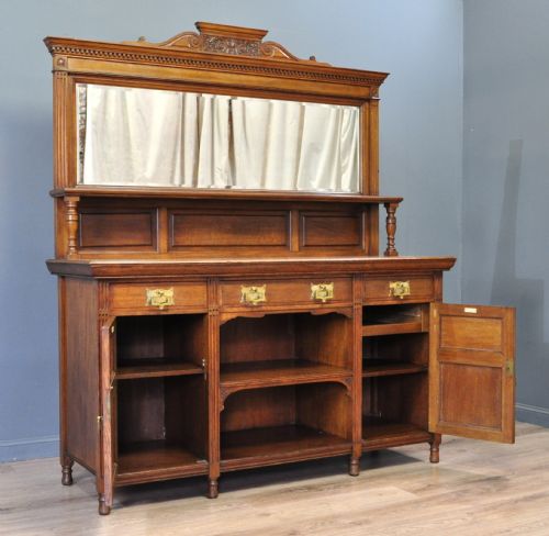 Dieses schöne große viktorianische Sideboard mit Spiegelrückseite befindet sich in einem sehr guten, soliden Zustand mit nur sehr geringen alters- und gebrauchsgerechten Oberflächenmarkierungen. Es gibt einige kleinere Einkerbungen und leichte Gebrauchsspuren an der Oberfläche. Später kommen noch Riegel an der Innenseite der Schranktüren hinzu, und eine der kleinen internen Schubladen fehlt.
