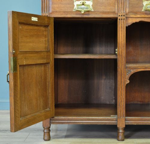 Dies bleibt ein sehr stilvolles und elegantes großes Sideboard aus viktorianisch geschnitztem Eichenholz, das auch in den kommenden Jahren guten Service bieten wird.