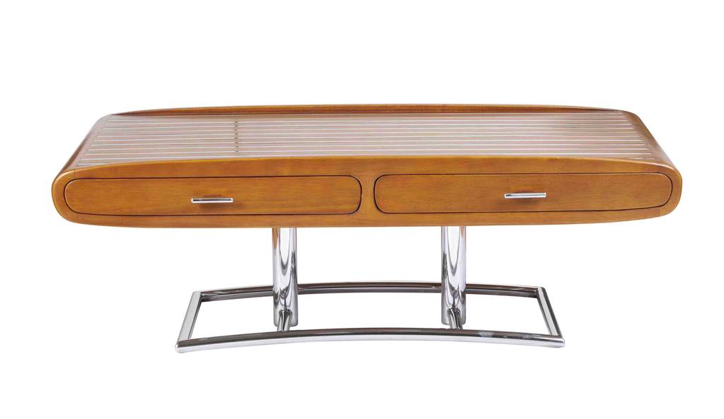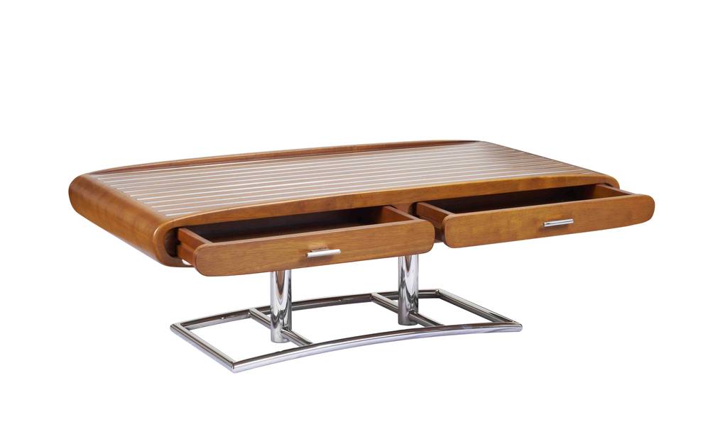 Moderner Couchtisch Holz mit Metallgestell und Schubladen – Couchtisch Art Deco Style